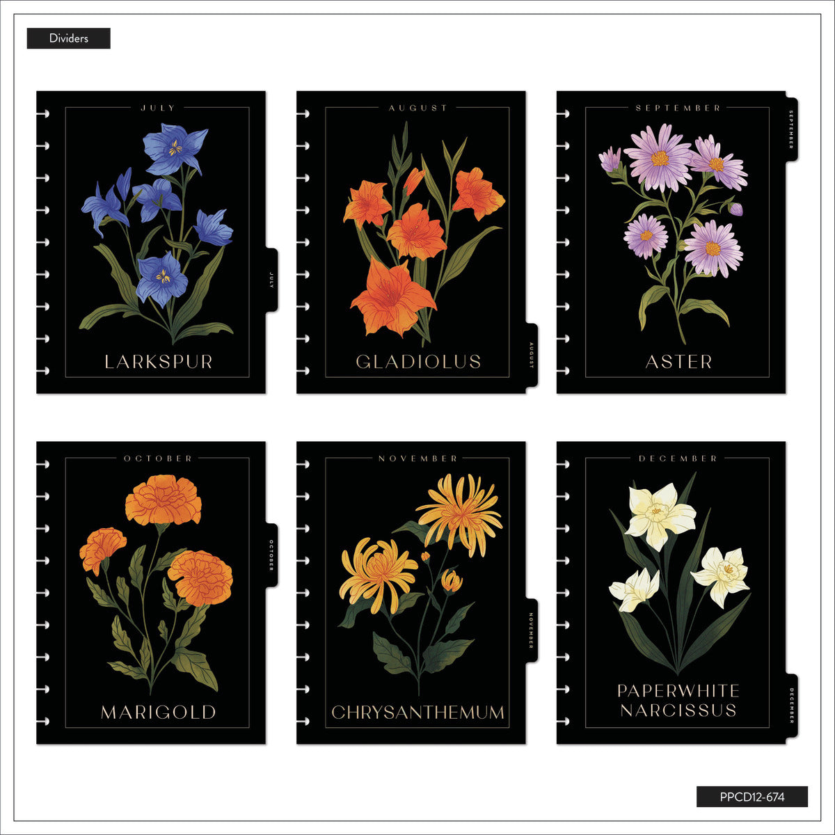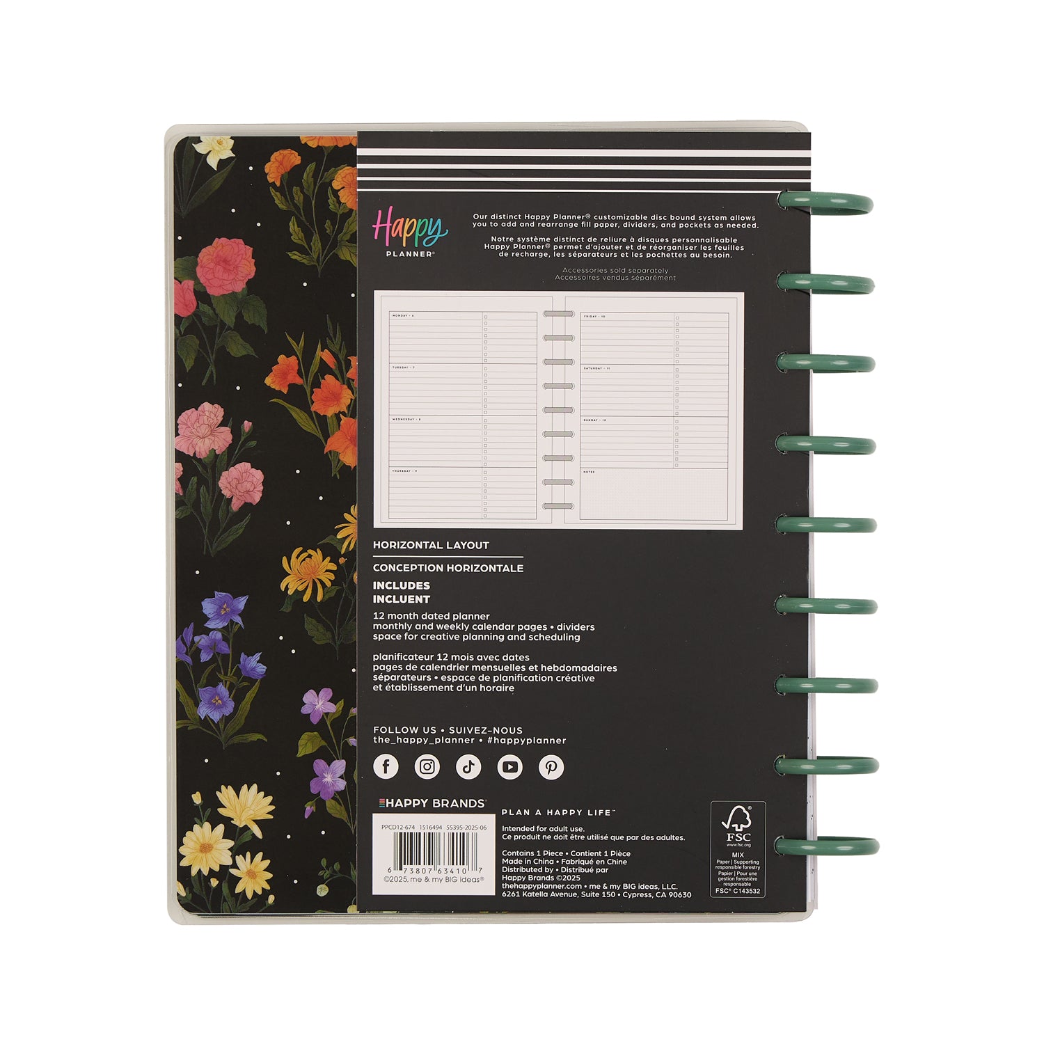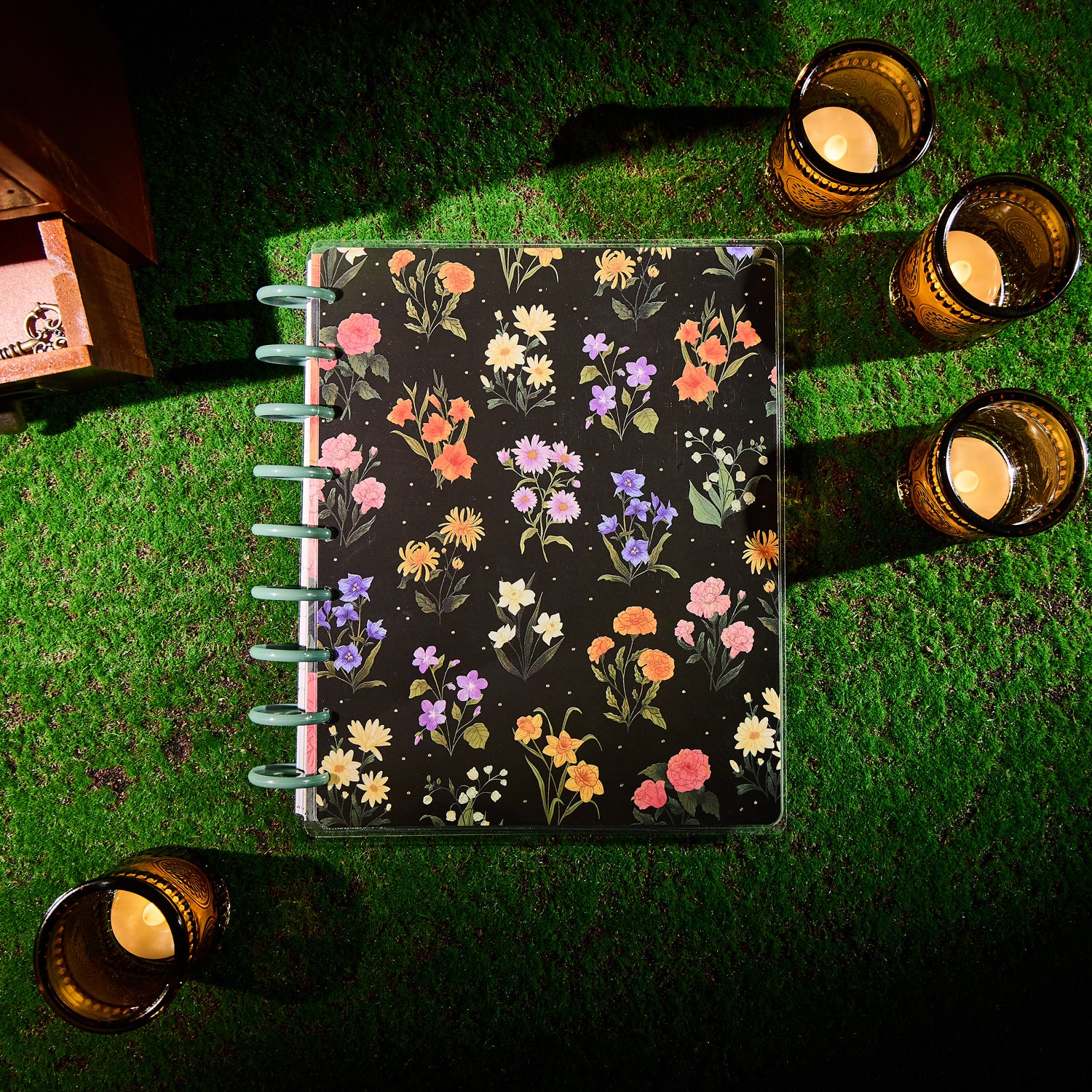 Step into a dark and dreamy garden with this elegant 12-month planner. The Noir Garden Happy Planner features a moody floral theme with rich colors, vintage-style botanical illustrations, and soft touches of inspiration. Its horizontal layout is perfect for journaling, daily reflections, or flexible planning.