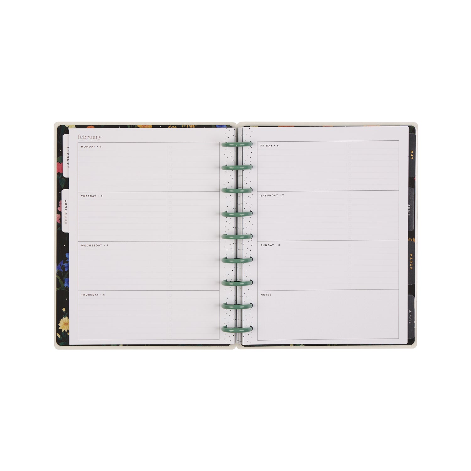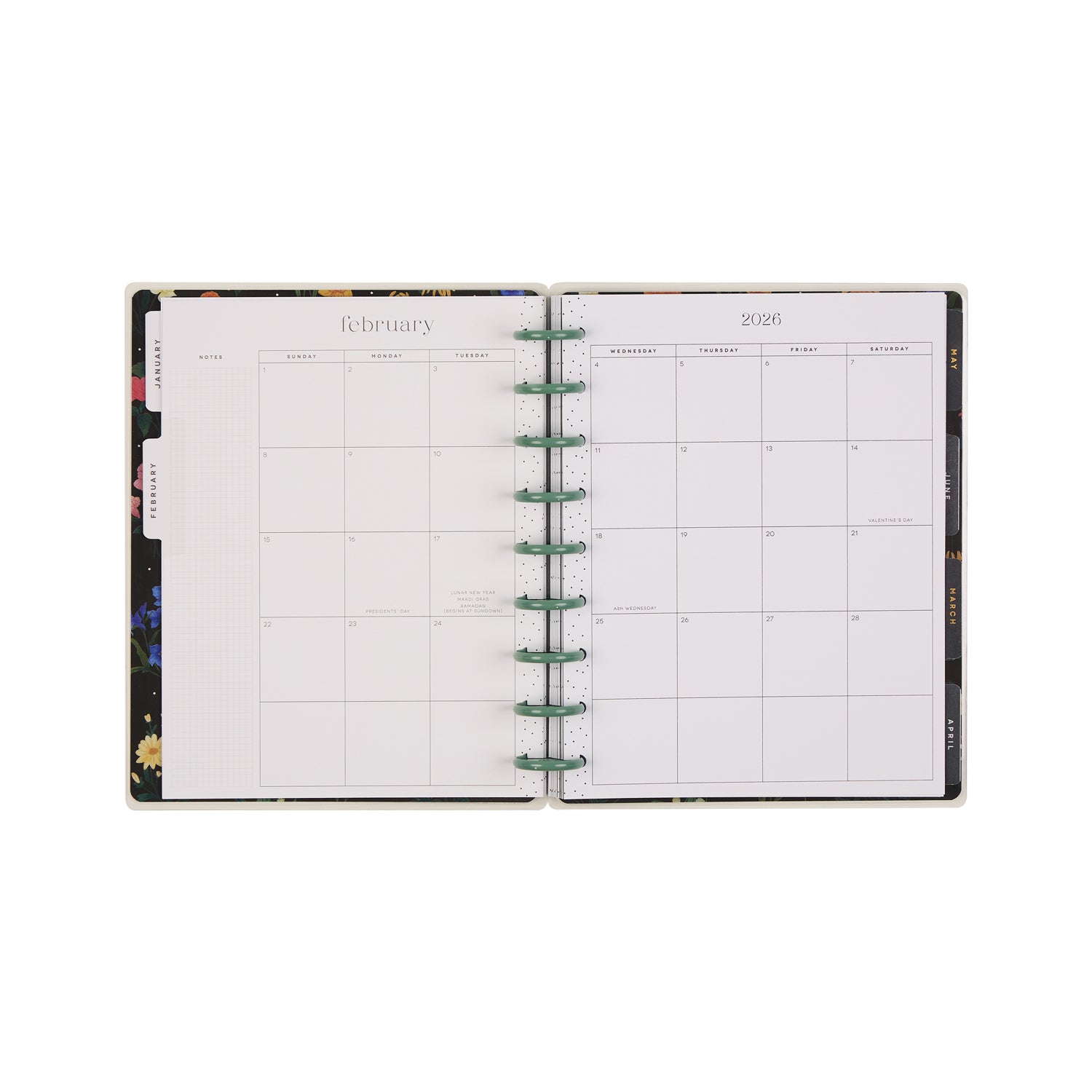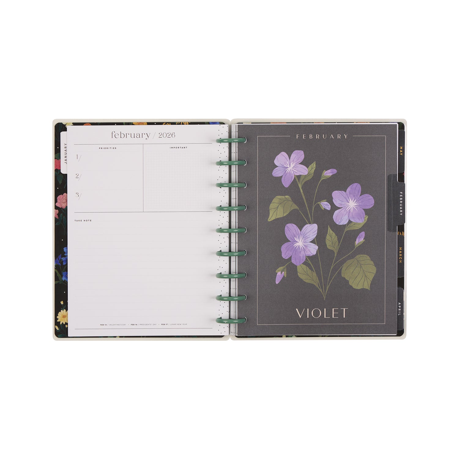 Step into a dark and dreamy garden with this elegant 12-month planner. The Noir Garden Happy Planner features a moody floral theme with rich colors, vintage-style botanical illustrations, and soft touches of inspiration. Its horizontal layout is perfect for journaling, daily reflections, or flexible planning.