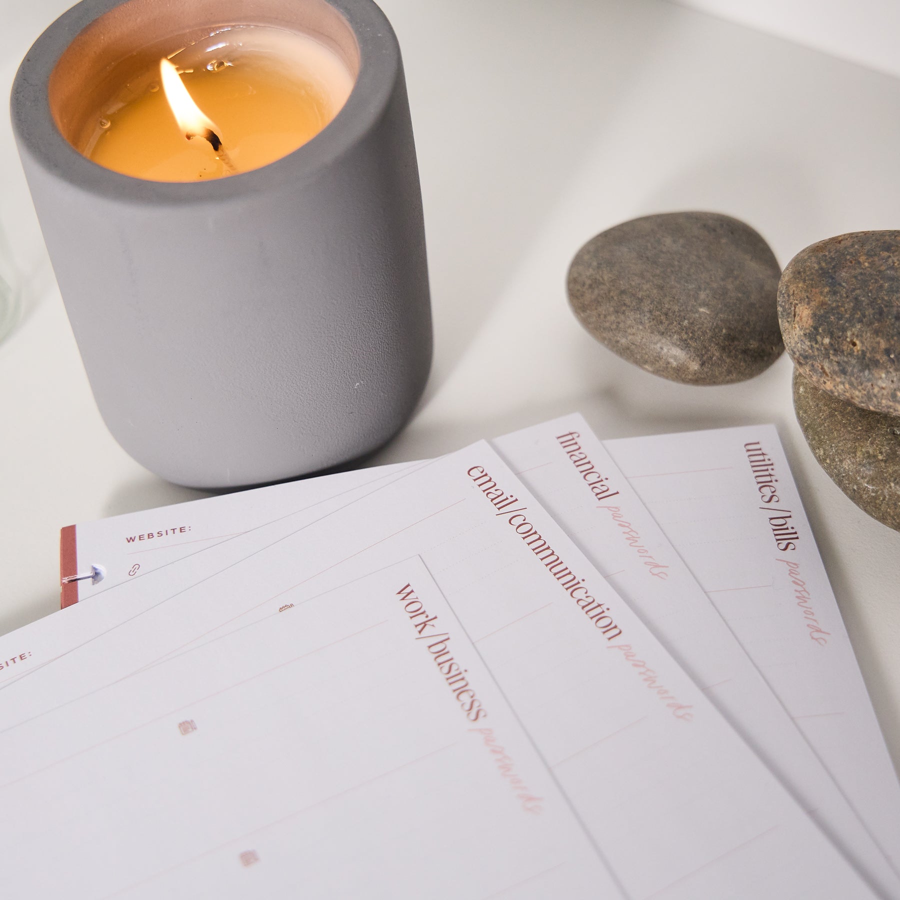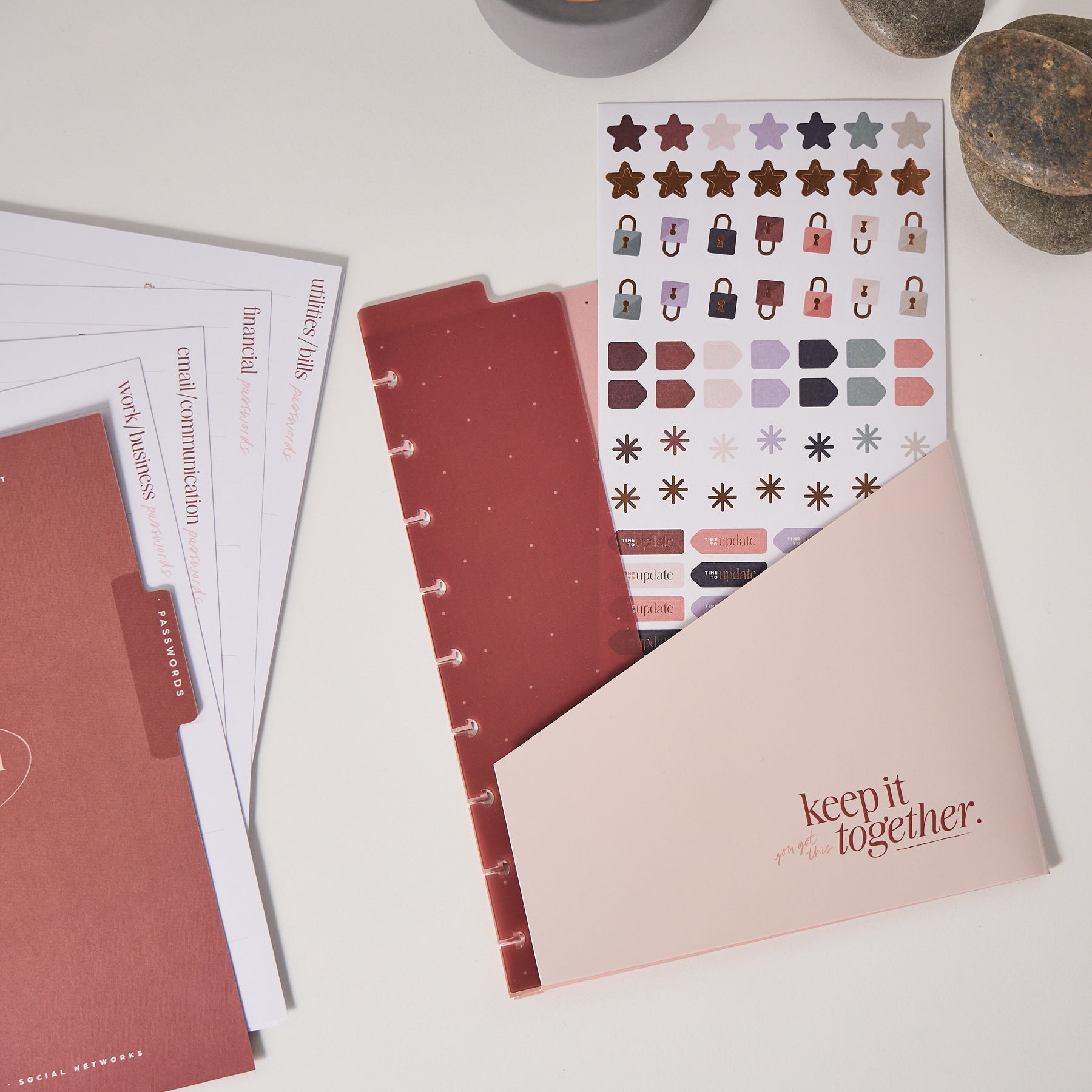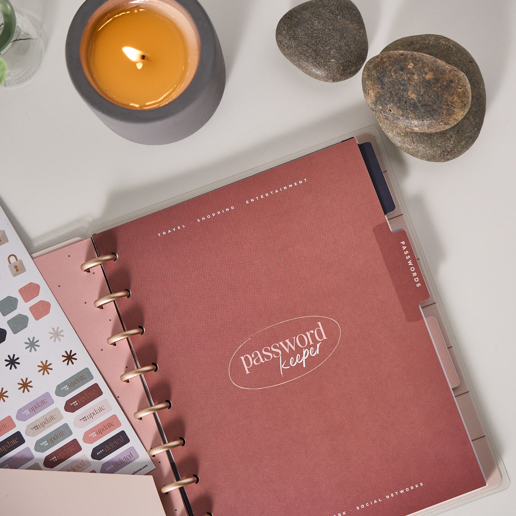 Never forget a login again with the Rise & Align Passwords Classic Accessory Pack. This pack includes dedicated pages and dividers to help you keep track of website logins, accounts, and other important details all in one convenient place.