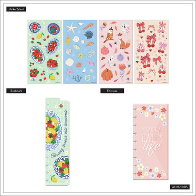 The Teaching Seasons Big Accessory Pack is a colorful collection of must-have planning tools that combine functionality with cheerful seasonal style. With classroom-ready note paper, sticker sheets, a snap-in bookmark, and more, this pack makes it easy (and fun) to stay organized all year long.