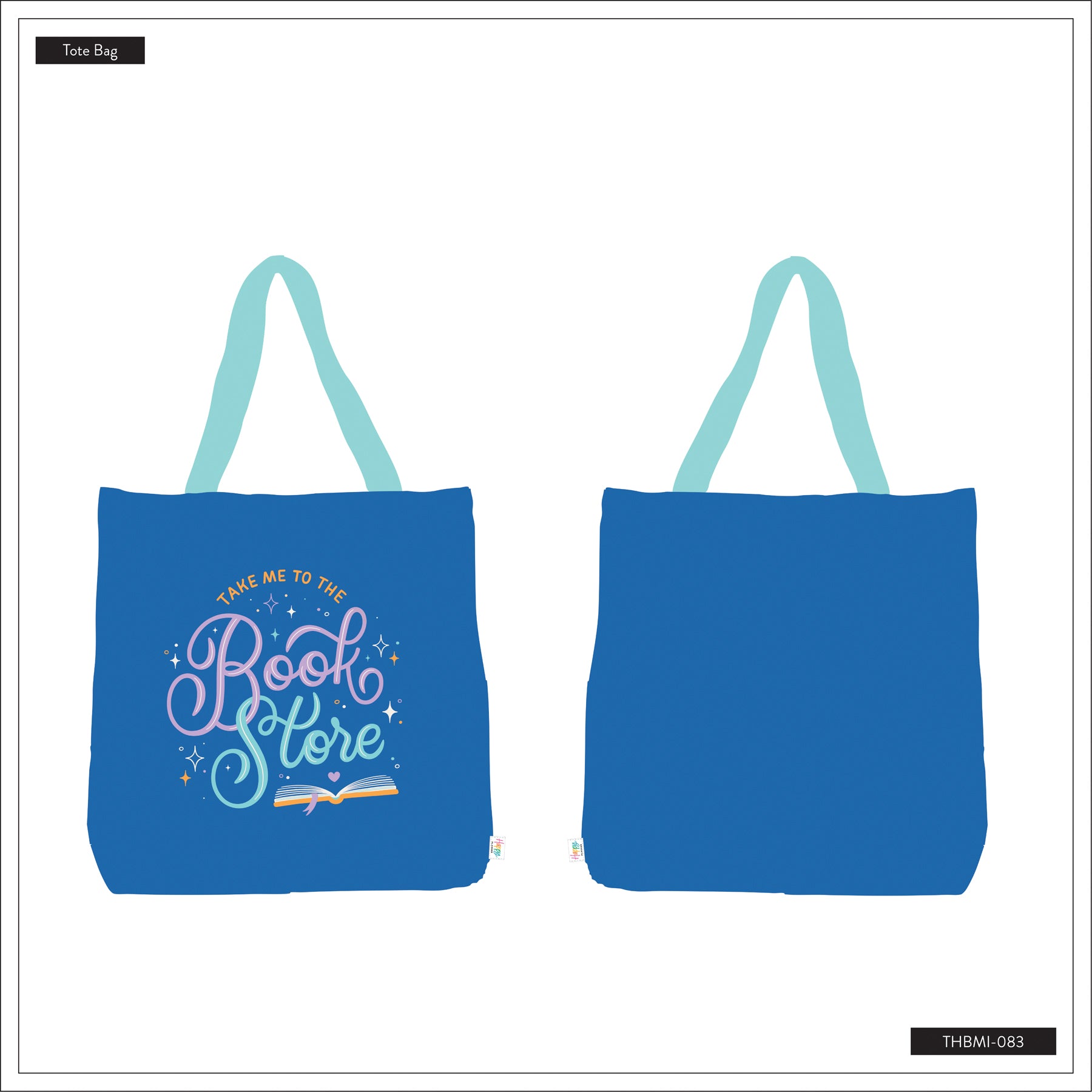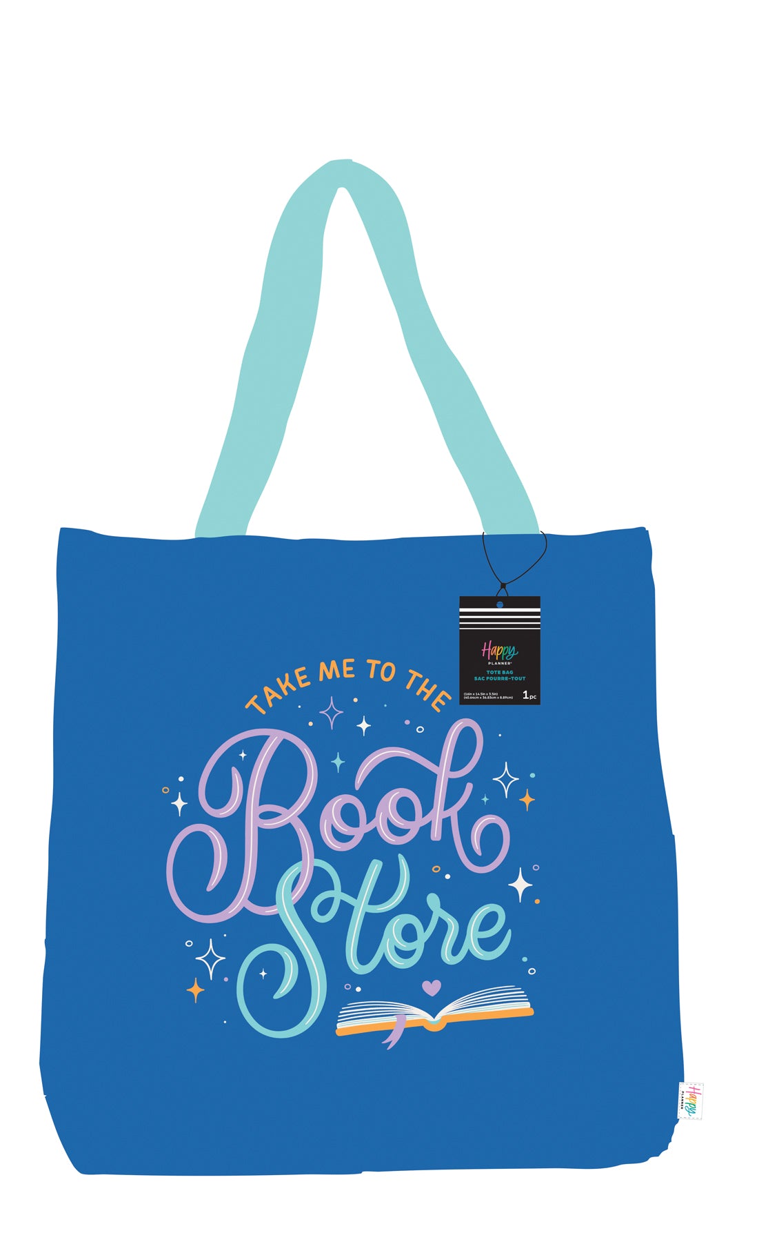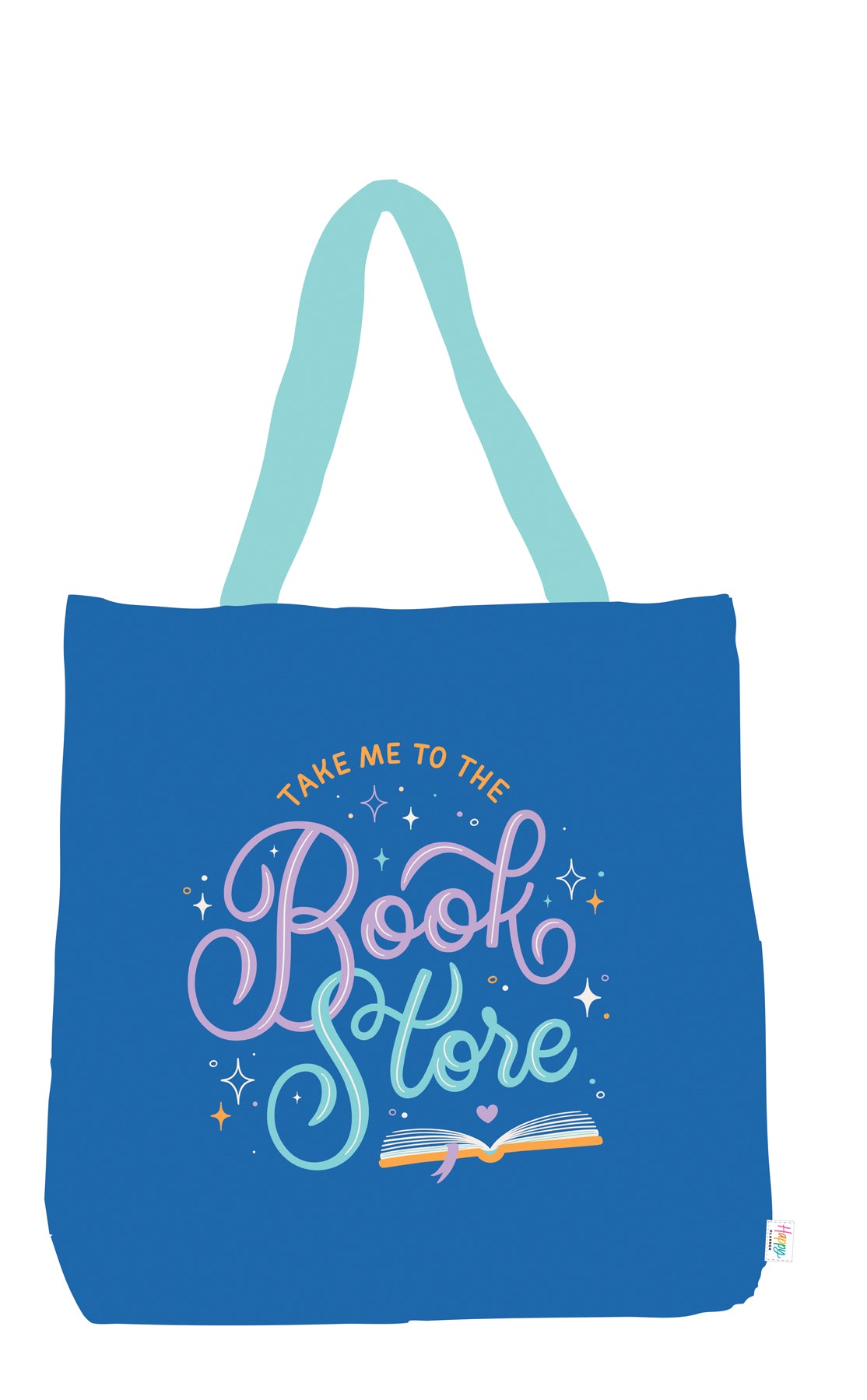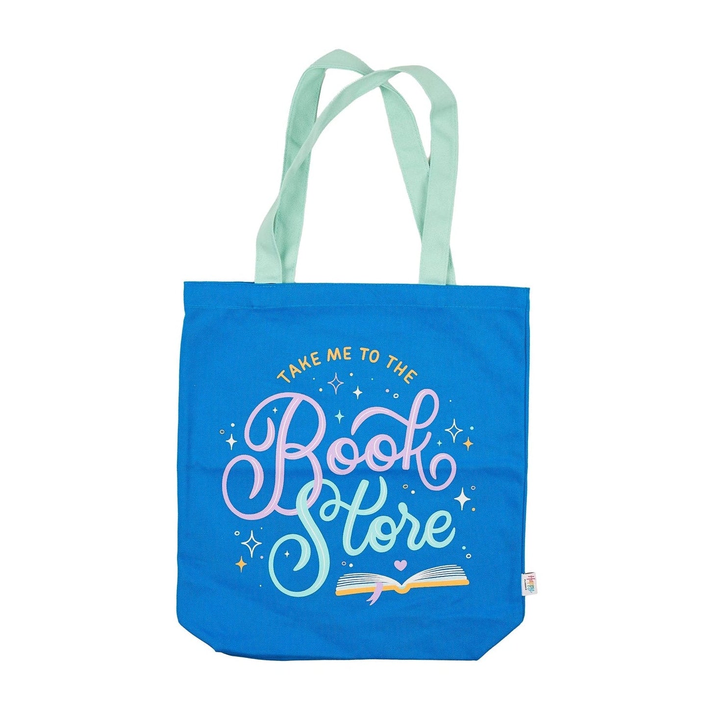 Durable canvas tote bag with colorful “Take Me to the Bookstore” design