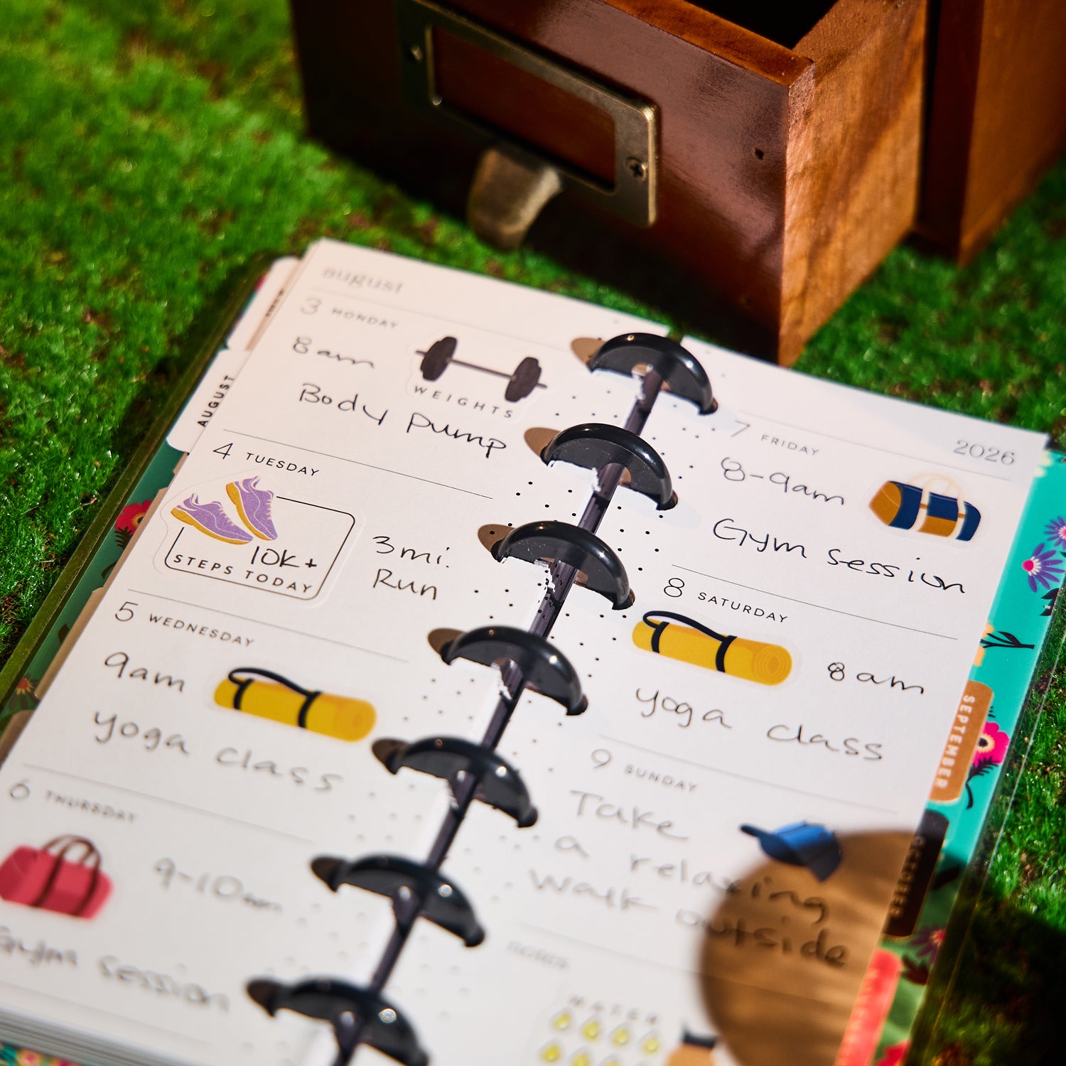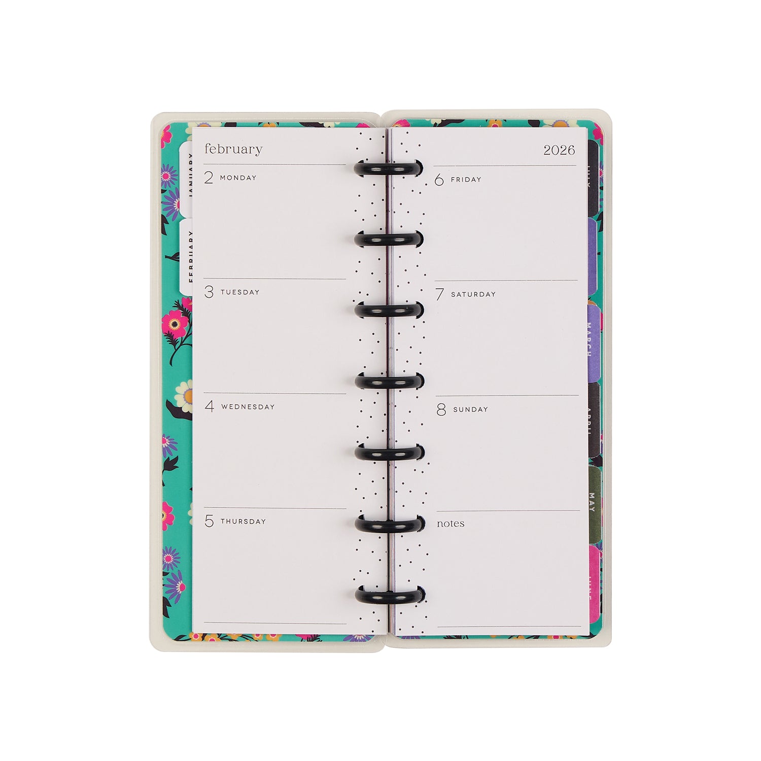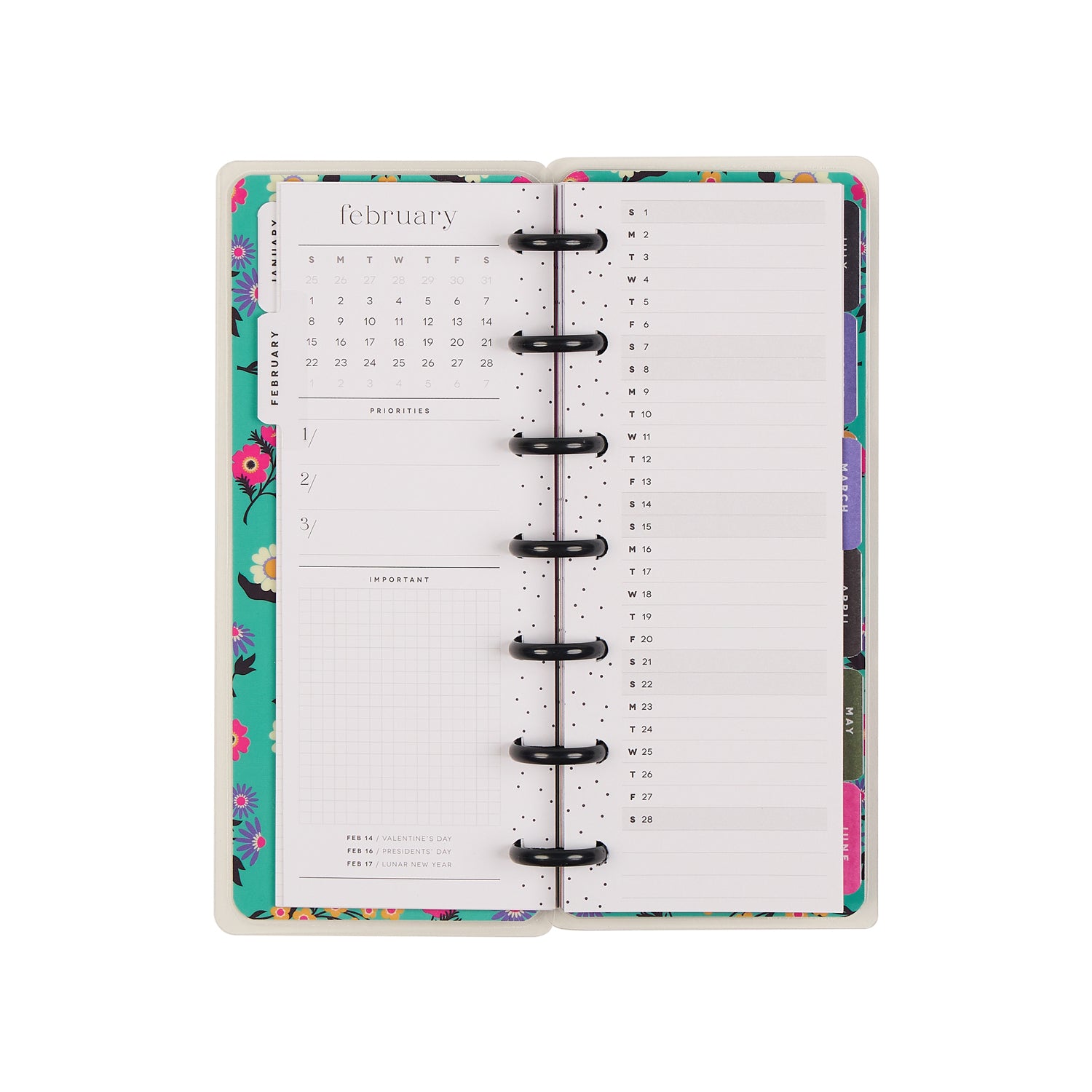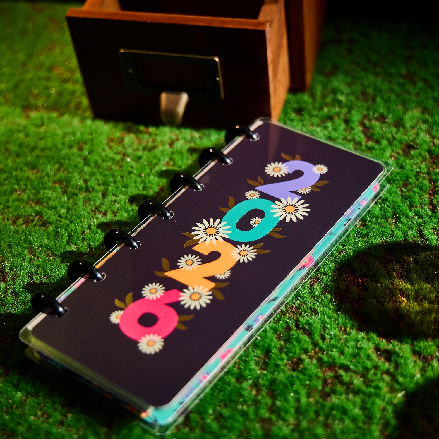 Add a pop of color to your plans with this compact and cheerful planner. Featuring fluorescent floral accents and a bold, playful cover, it’s perfect for on-the-go organizing in a petite package.