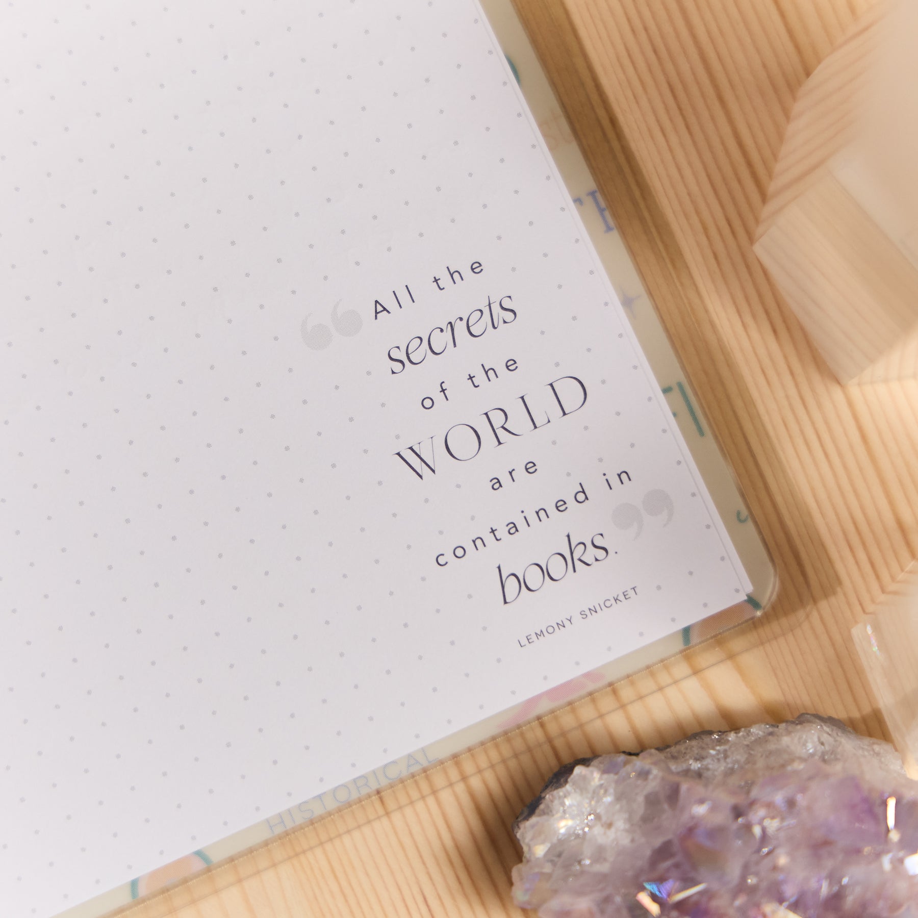 • Mini Reading Journal (4.625" x 7") with 60 pages to track your reading, including reviews, favorite quotes, etc.