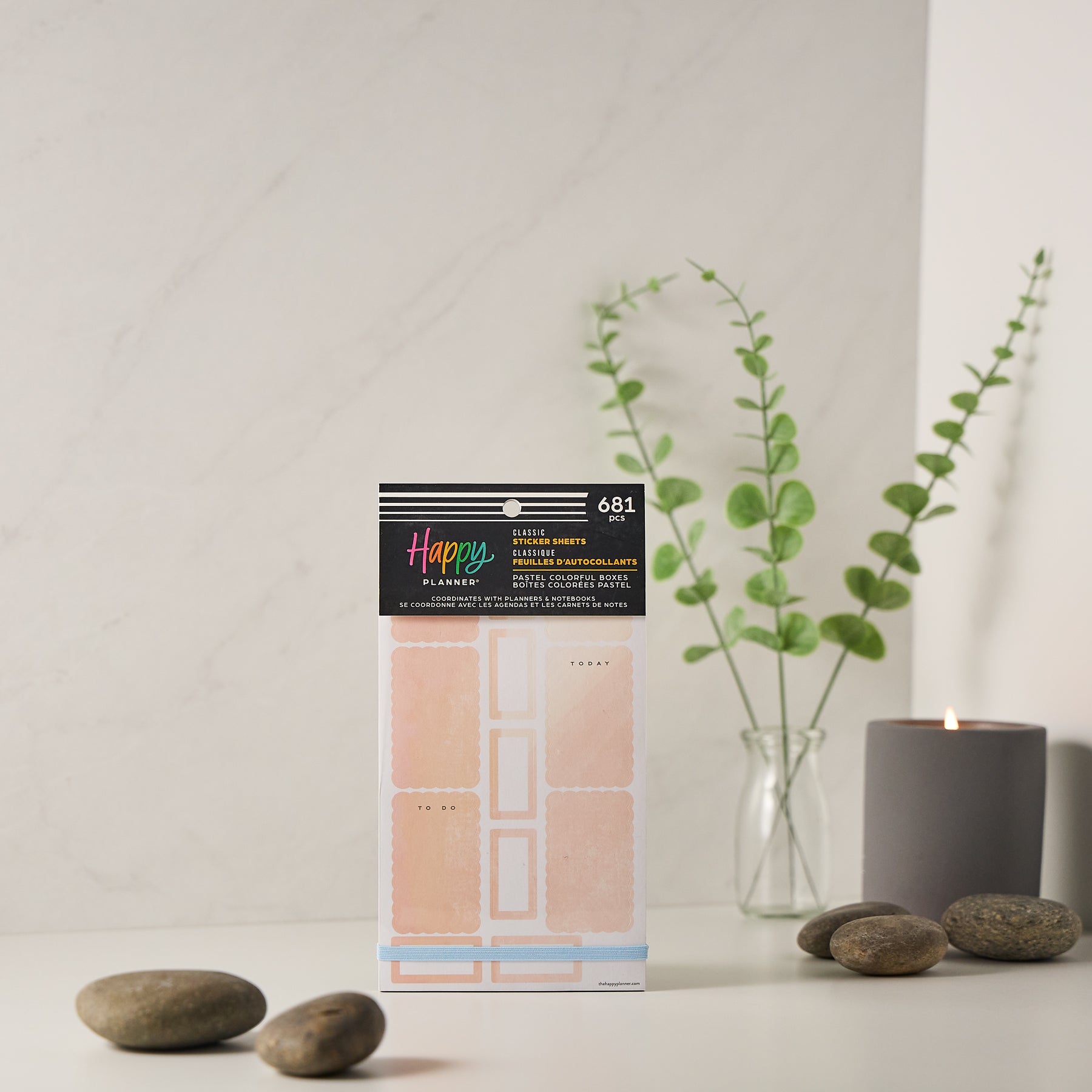 • 30 sticker sheets filled with pastel box designs in a variety of shapes and sizes