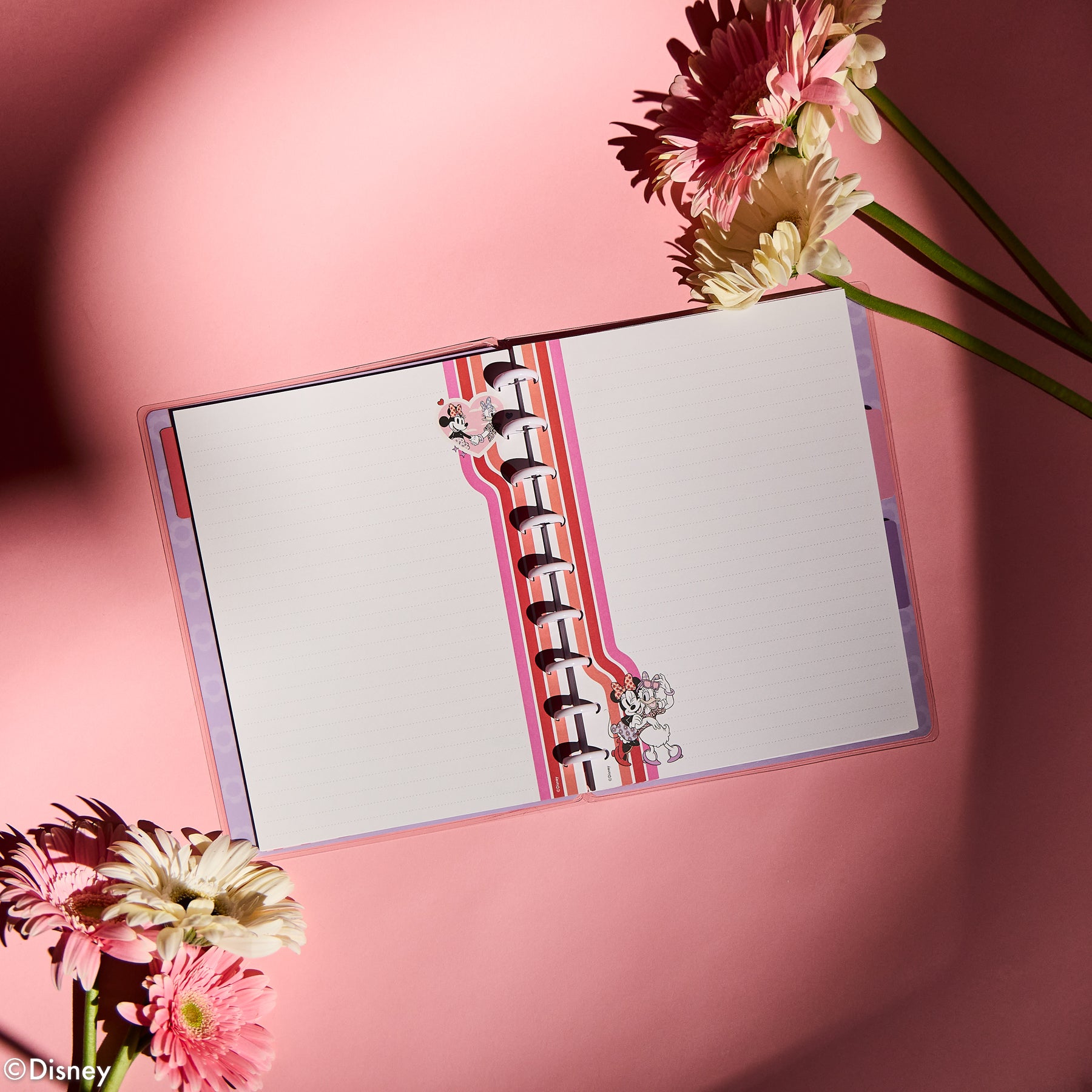 Get ready to plan, doodle, and dream in true Disney Minnie Mouse style! This Classic size dotted lined notebook features bold artwork of Minnie Mouse striking a pose in her signature polka dots and bow, set against a playful pink-and-red wavy backdrop. With 60 sheets and three vibrant dividers, it’s the perfect companion for jotting down big ideas or little to-dos.
