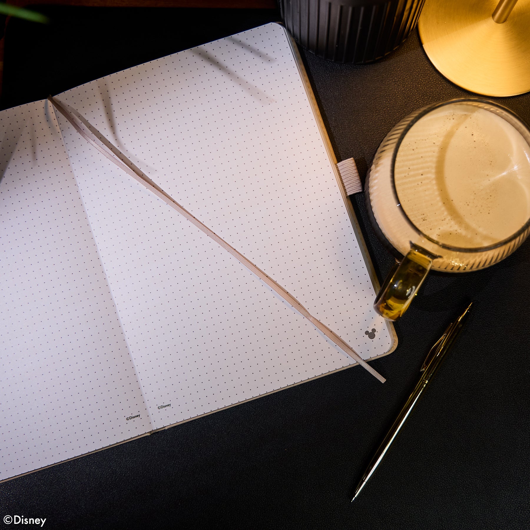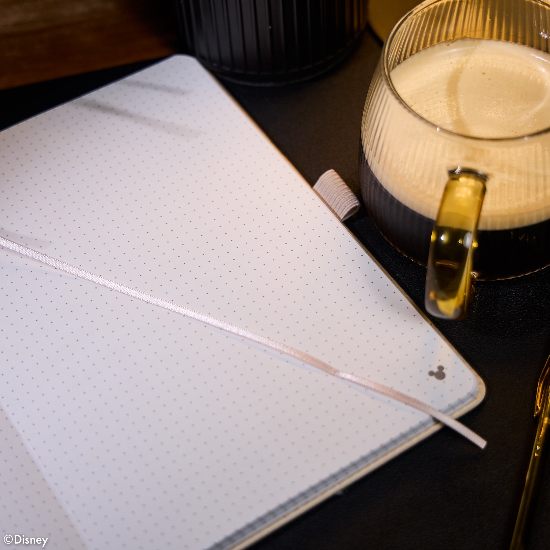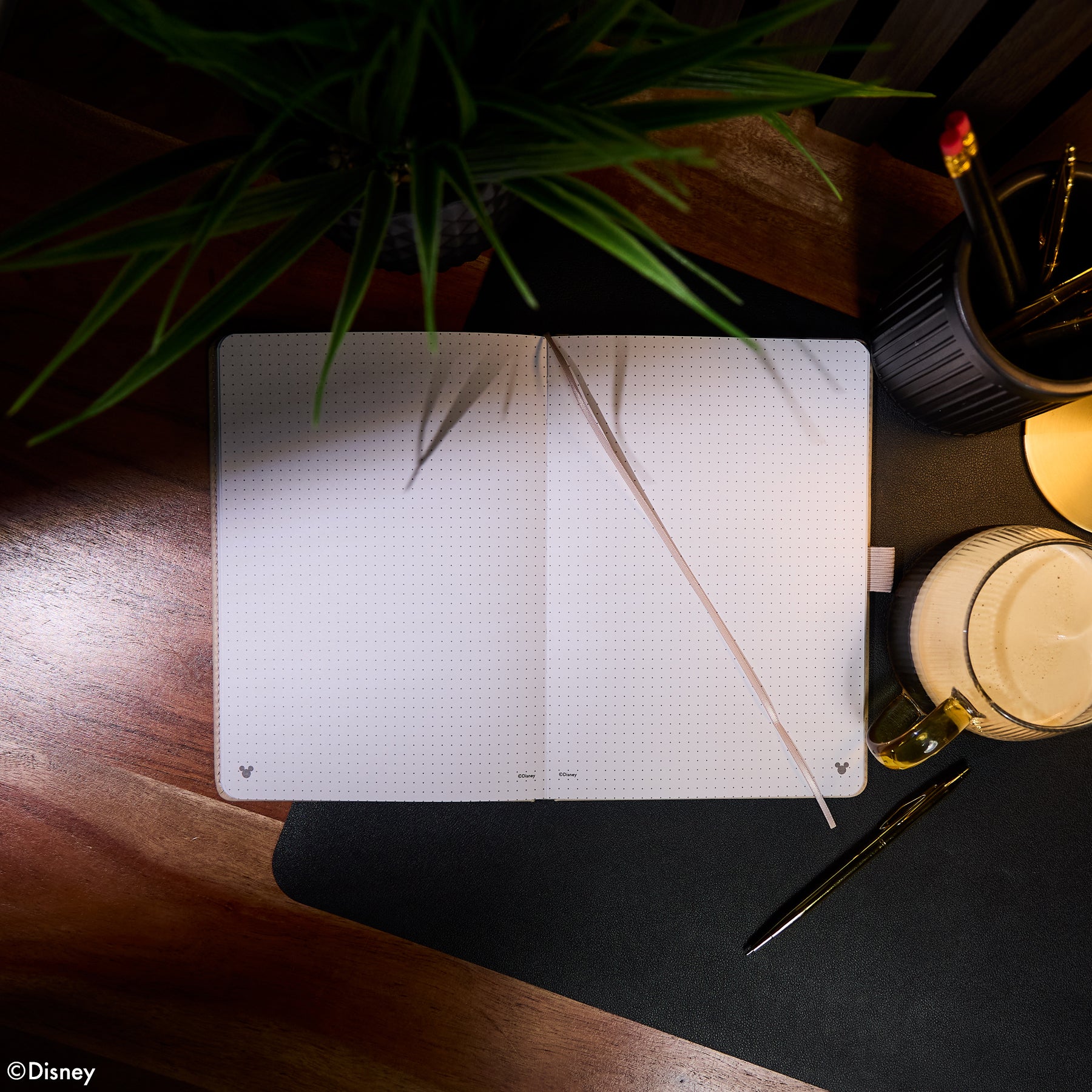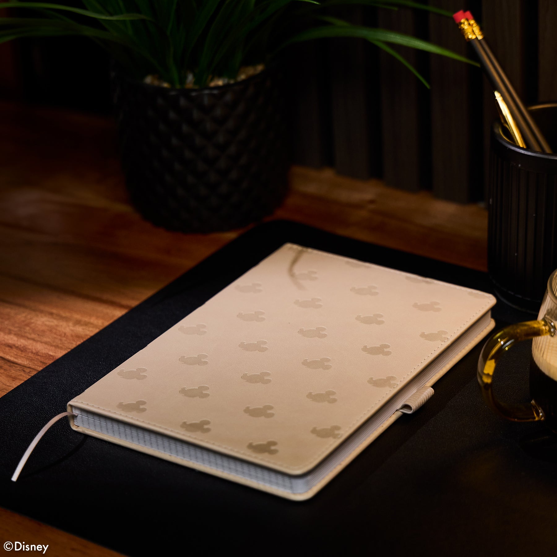 Bring a touch of fun to your daily notes with this sleek and stylish Disney journal. Featuring a subtle all-over Disney Mickey Mouse print and an elegant ivory finish, this dot grid book bound journal is a timeless essential for Disney fans who love refined simplicity.