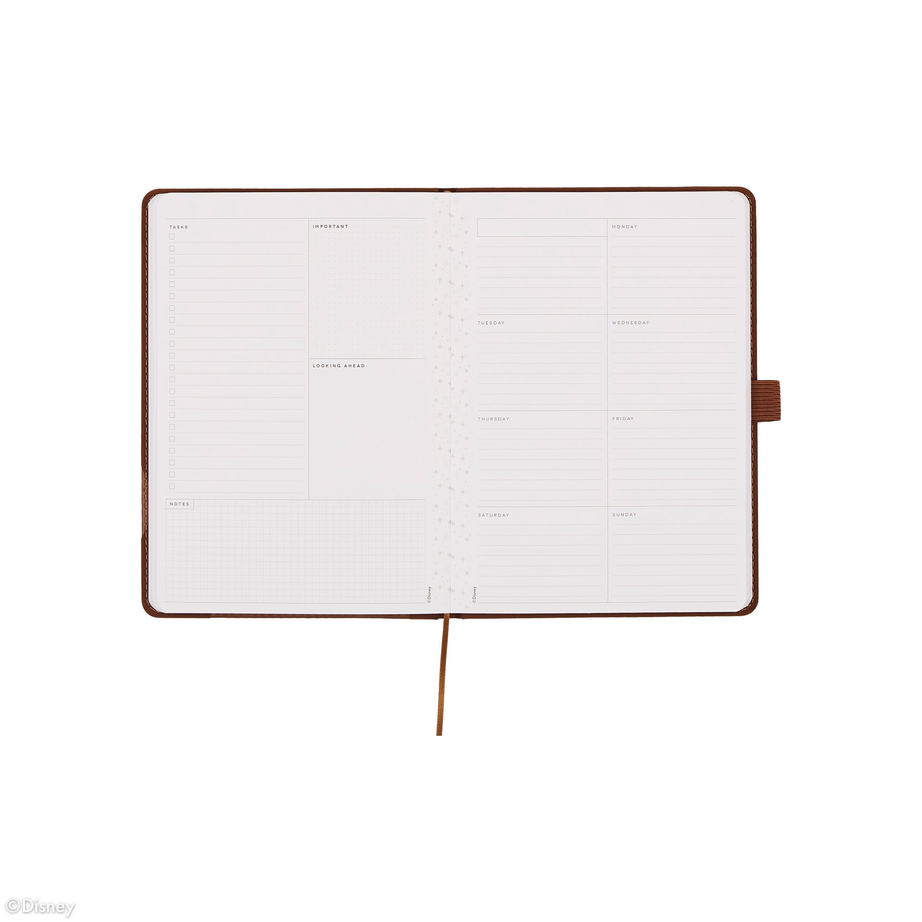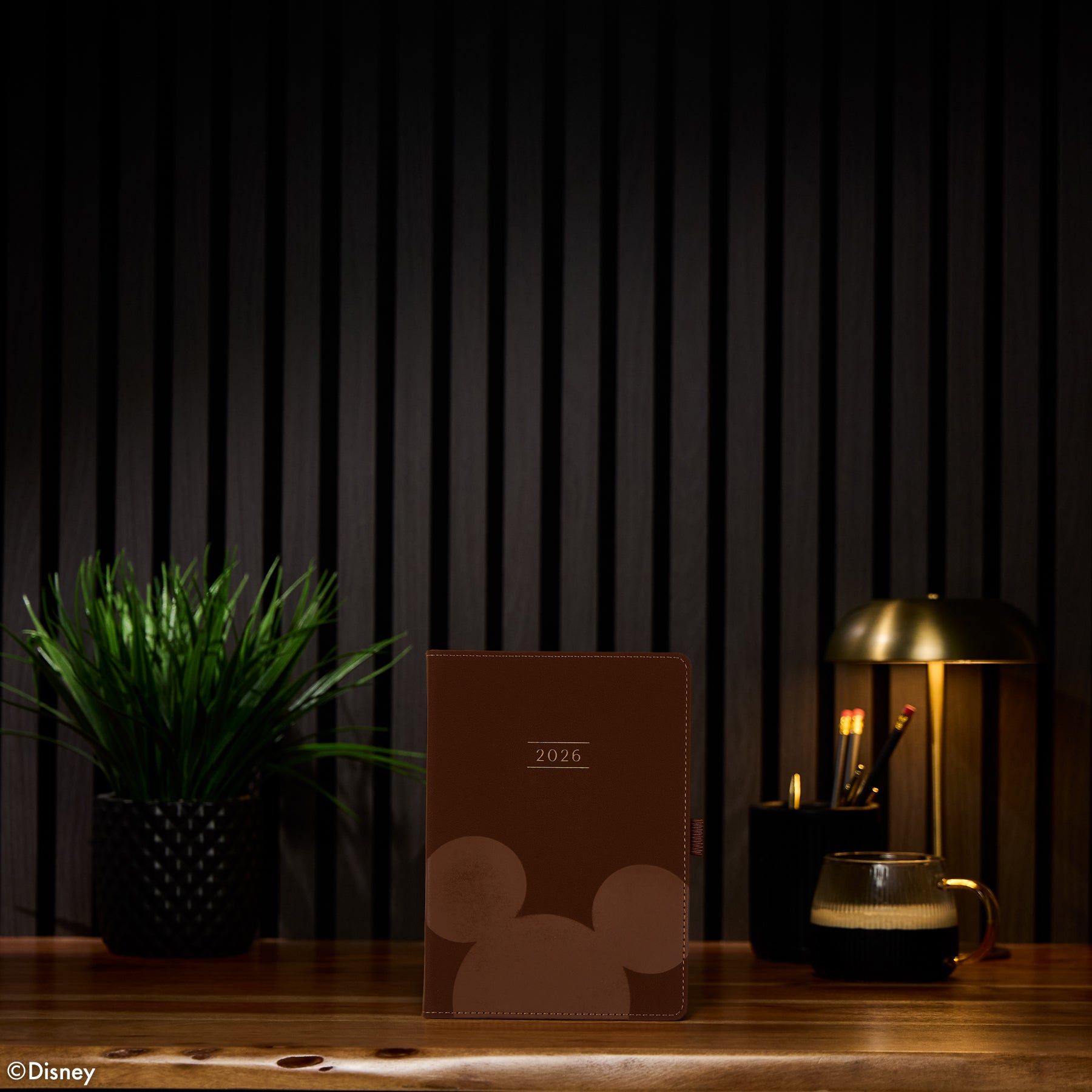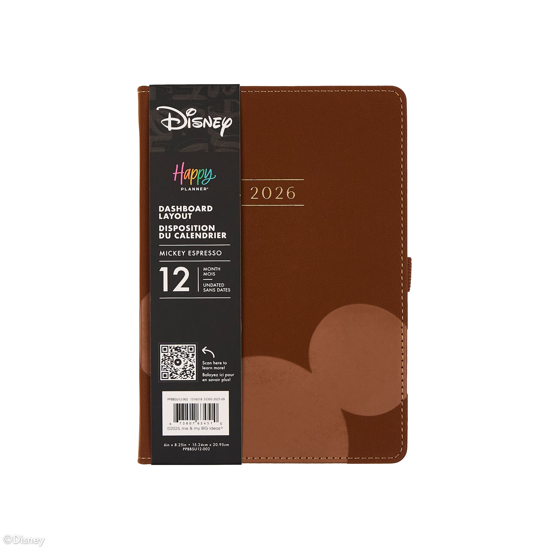 Organize your life with intention and a touch of timeless Disney charm. The Premium Espresso Book Bound Planner features a rich brown vegan leather cover with a soft matte finish and embossed Disney Mickey Mouse silhouette for a subtle yet iconic statement. This sleek 12-month planner is undated and designed in the compact, versatile dashboard layout, perfect for everyday plans and big-picture goals.