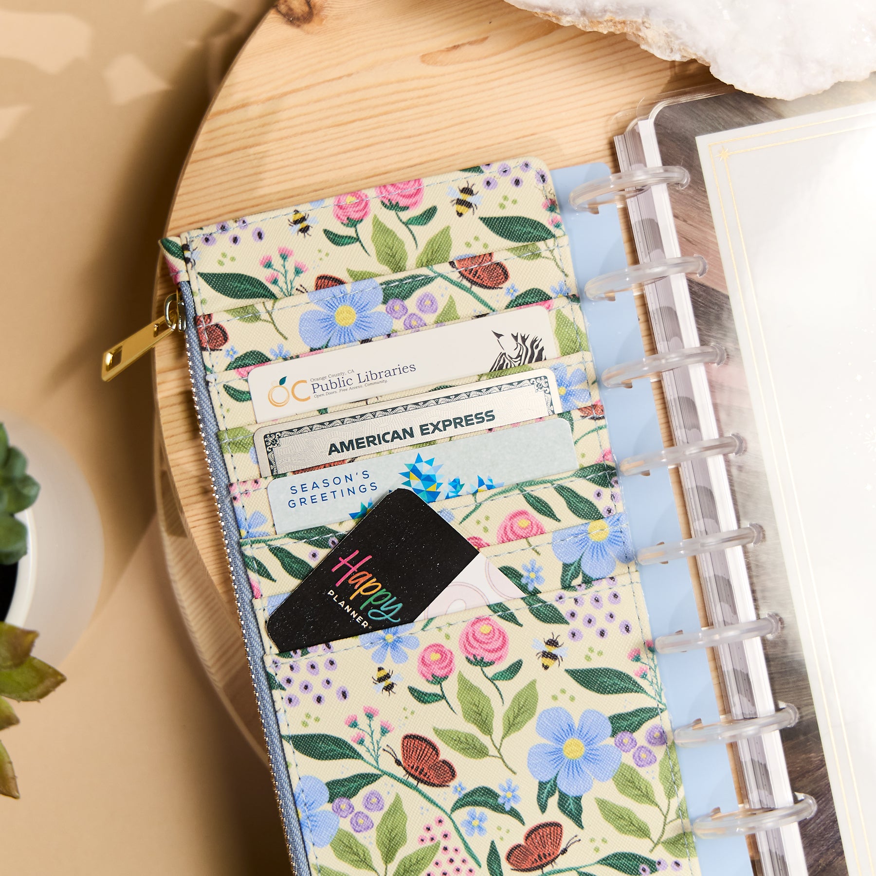 Keep your cards, IDs, and essentials right inside your planner with this brand-new product from The Happy Planner! The Buzzy Garden Snap-In Classic Card Holder Wallet combines beauty and function with a floral pattern featuring buzzing bees and bright blooms. It snaps easily into your Classic size planner, so you’ll always have what you need, right where you need it.