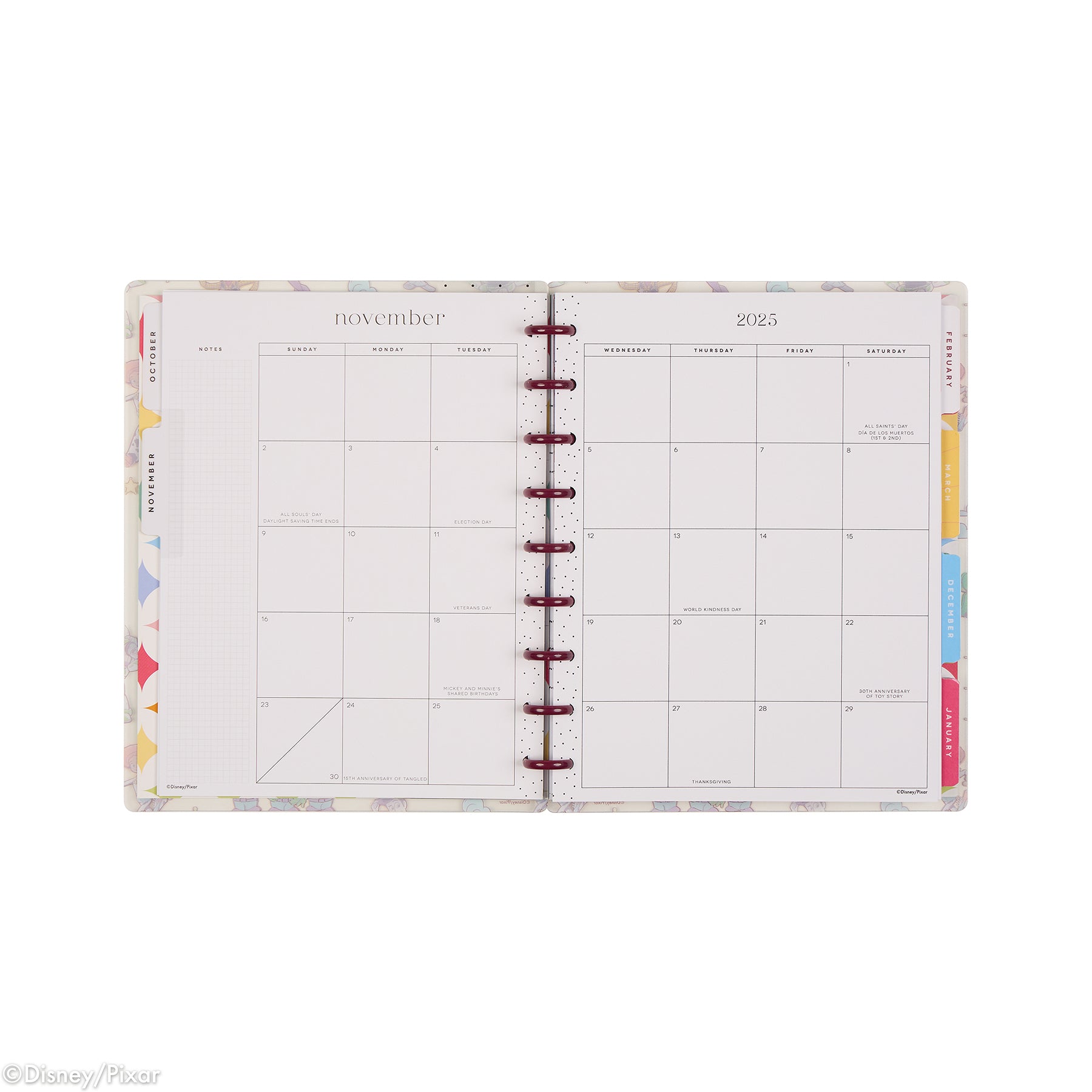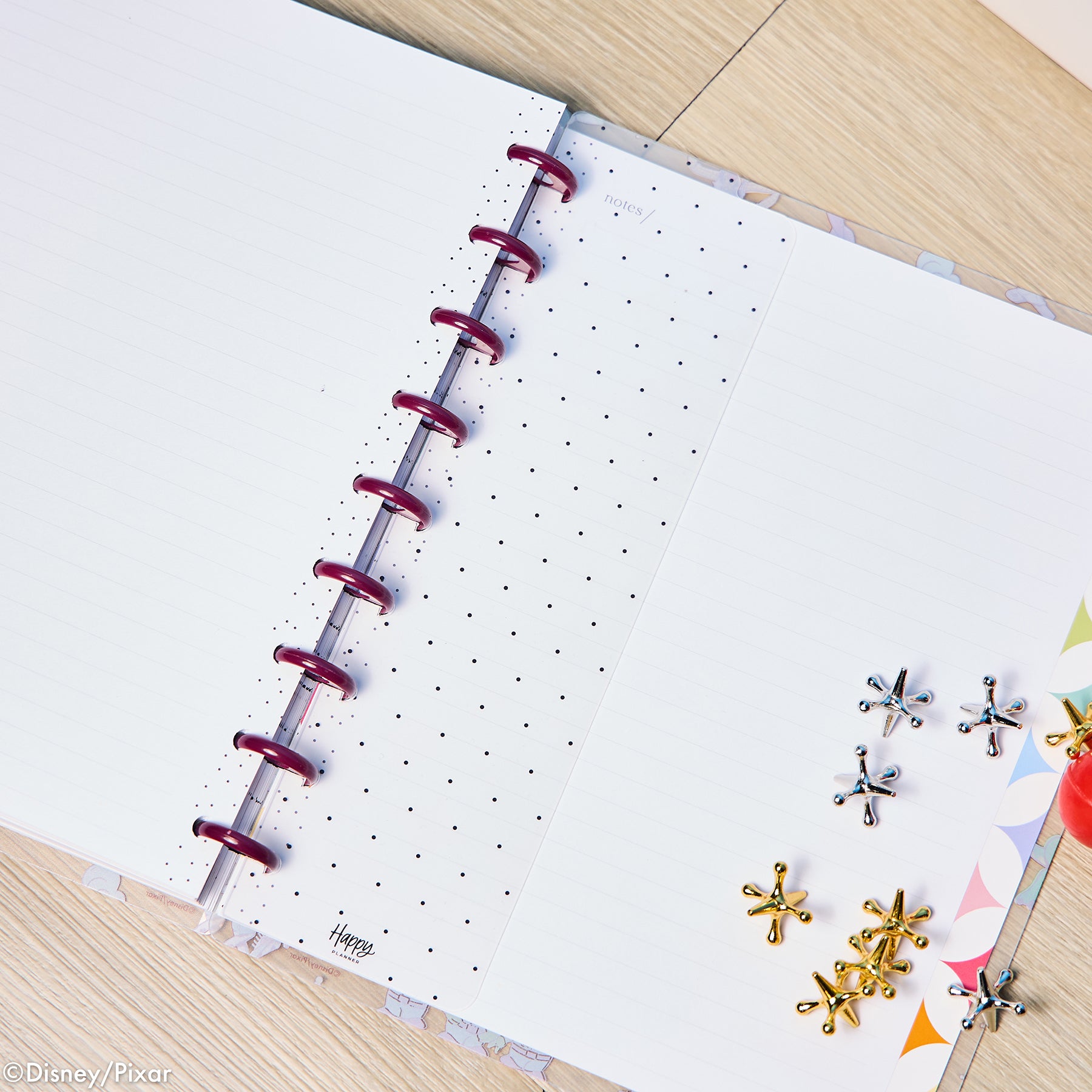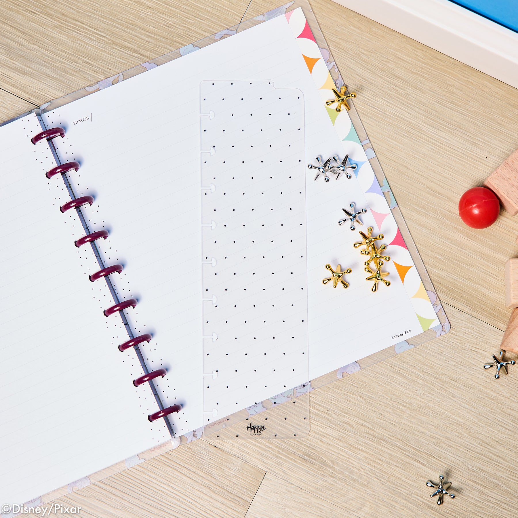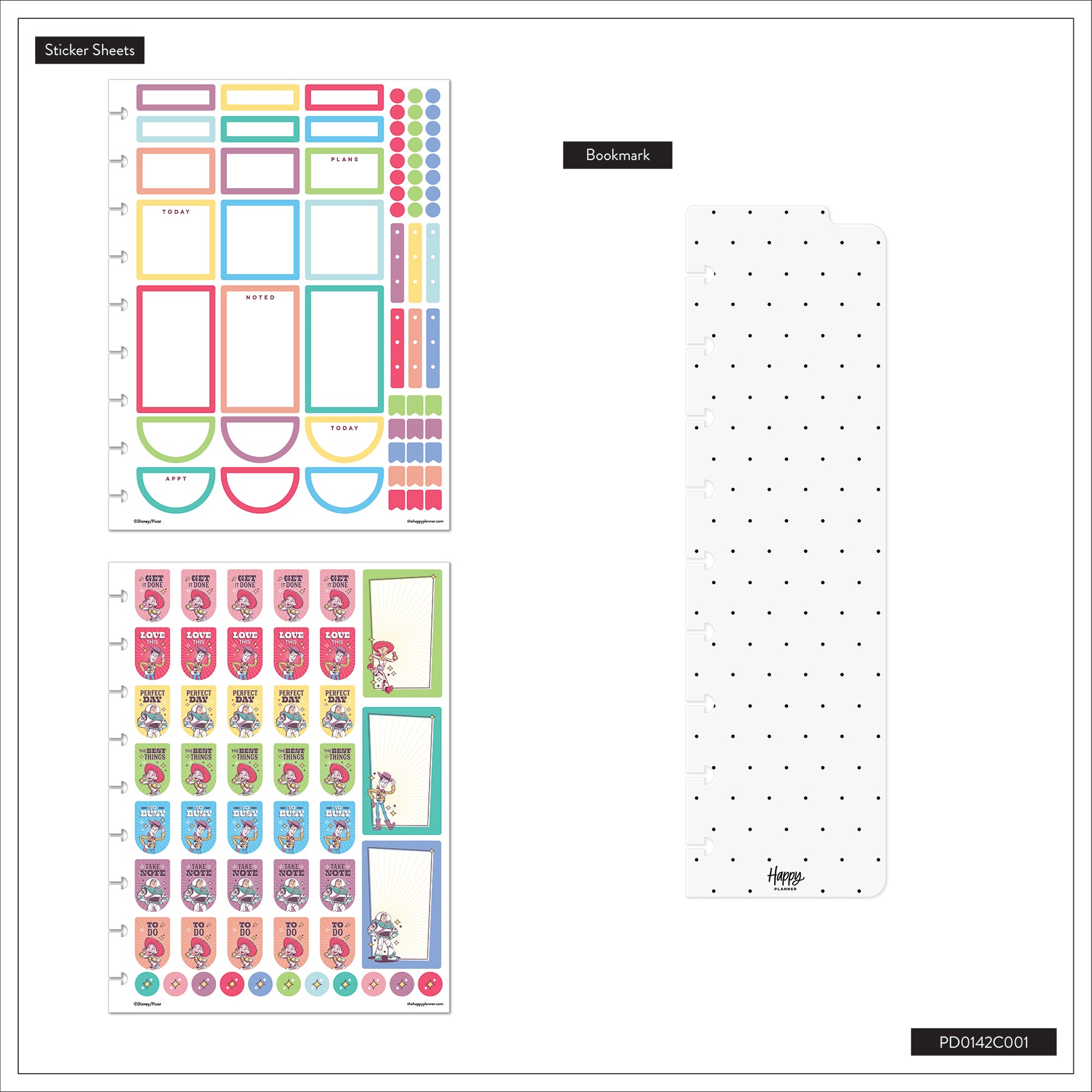 Built with the Happy Planner disc-bound system, you can easily add, remove, or rearrange pages to customize your planner. Extras like a handy bookmark, lined note pages, and two Toy Story–themed full-color sticker sheets make planning even more enjoyable. The Classic size (7" x 9.25") fits into most backpacks and work totes, so you can take it with you wherever the day leads.