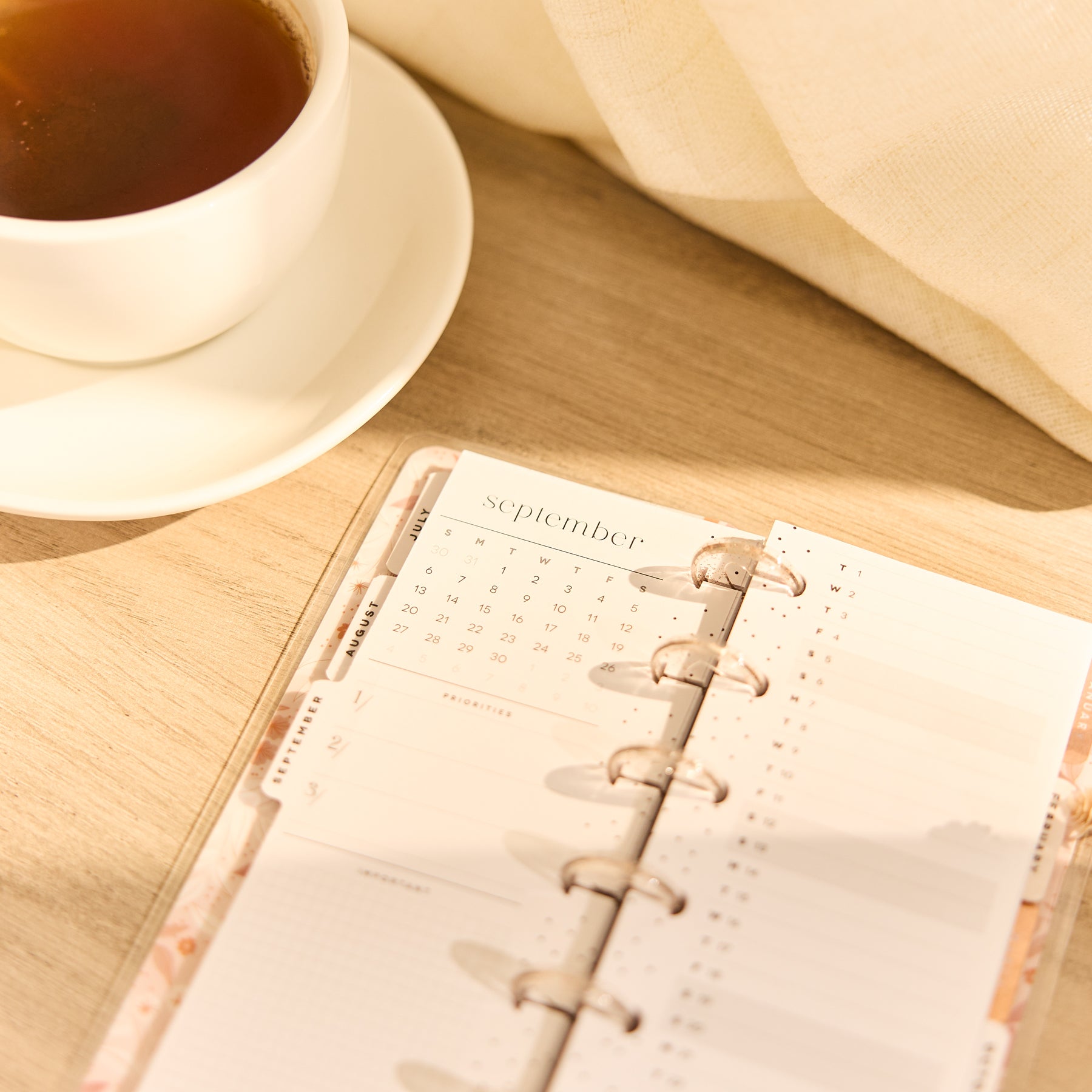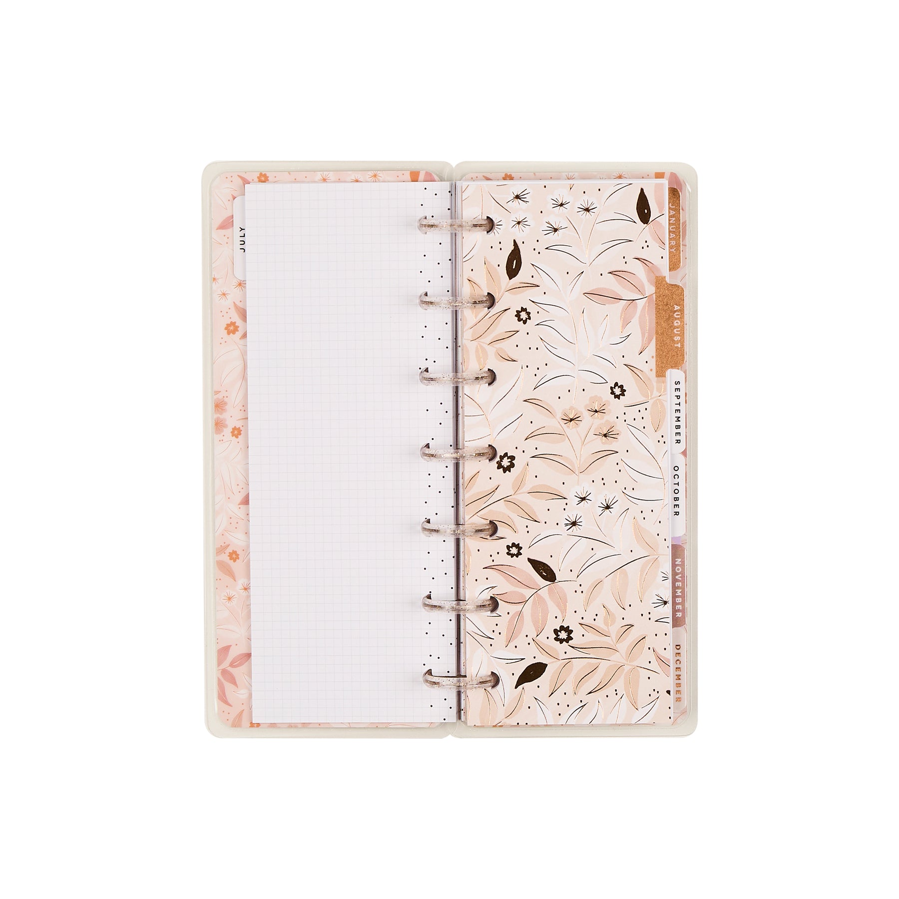 • Elegant monthly dividers with calming, nature-inspired artwork