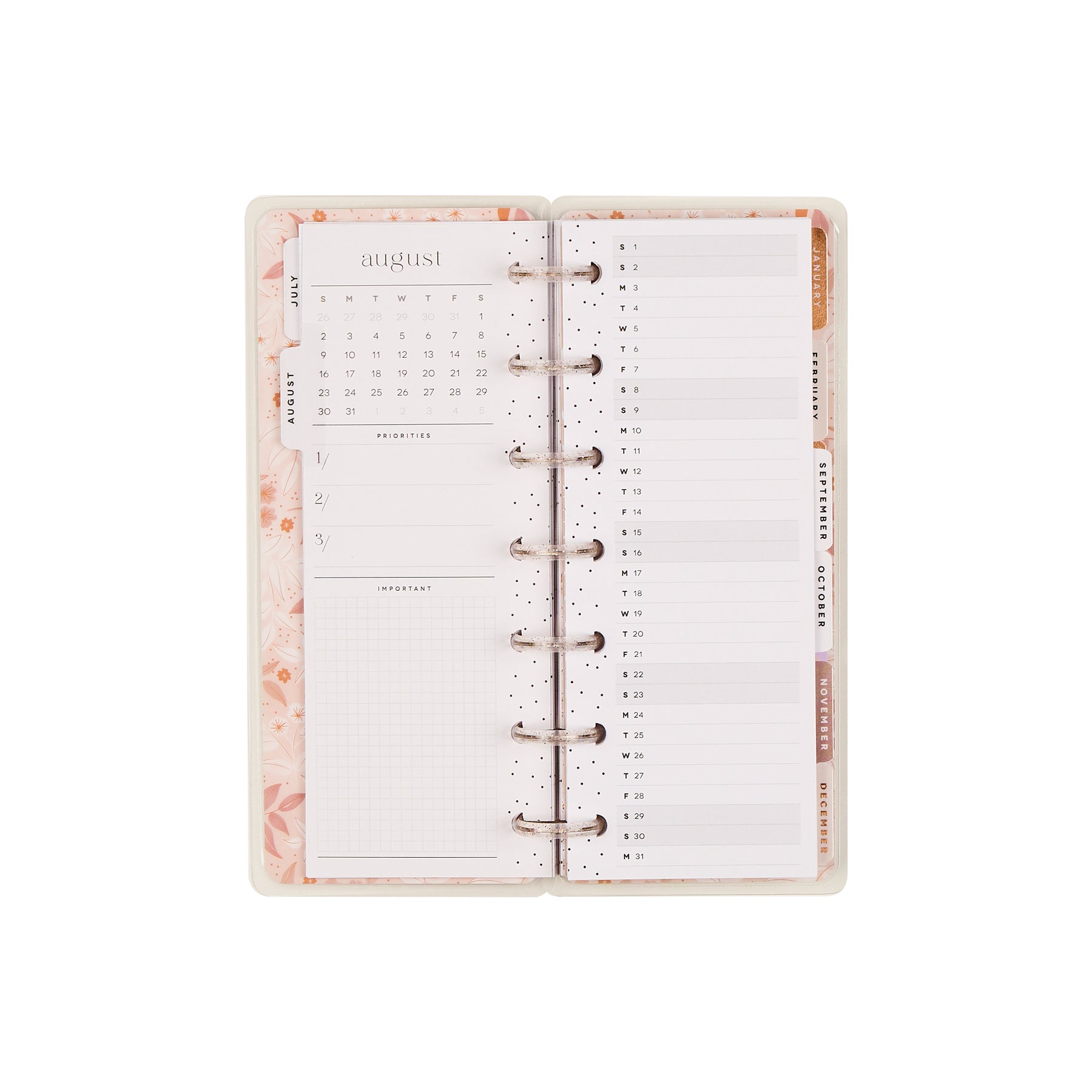 Bring a little warmth and serenity to your everyday planning with the Dune Hues Skinny Mini Spiral Planner. This 12-month dated planner (July 2026–June 2027) features a soft, sun-washed palette of blush tones, gentle patterns, and delicate foil accents that capture the calming beauty of drifting desert hues. Compact and elegant, it’s designed to bring a peaceful touch to even your busiest days.