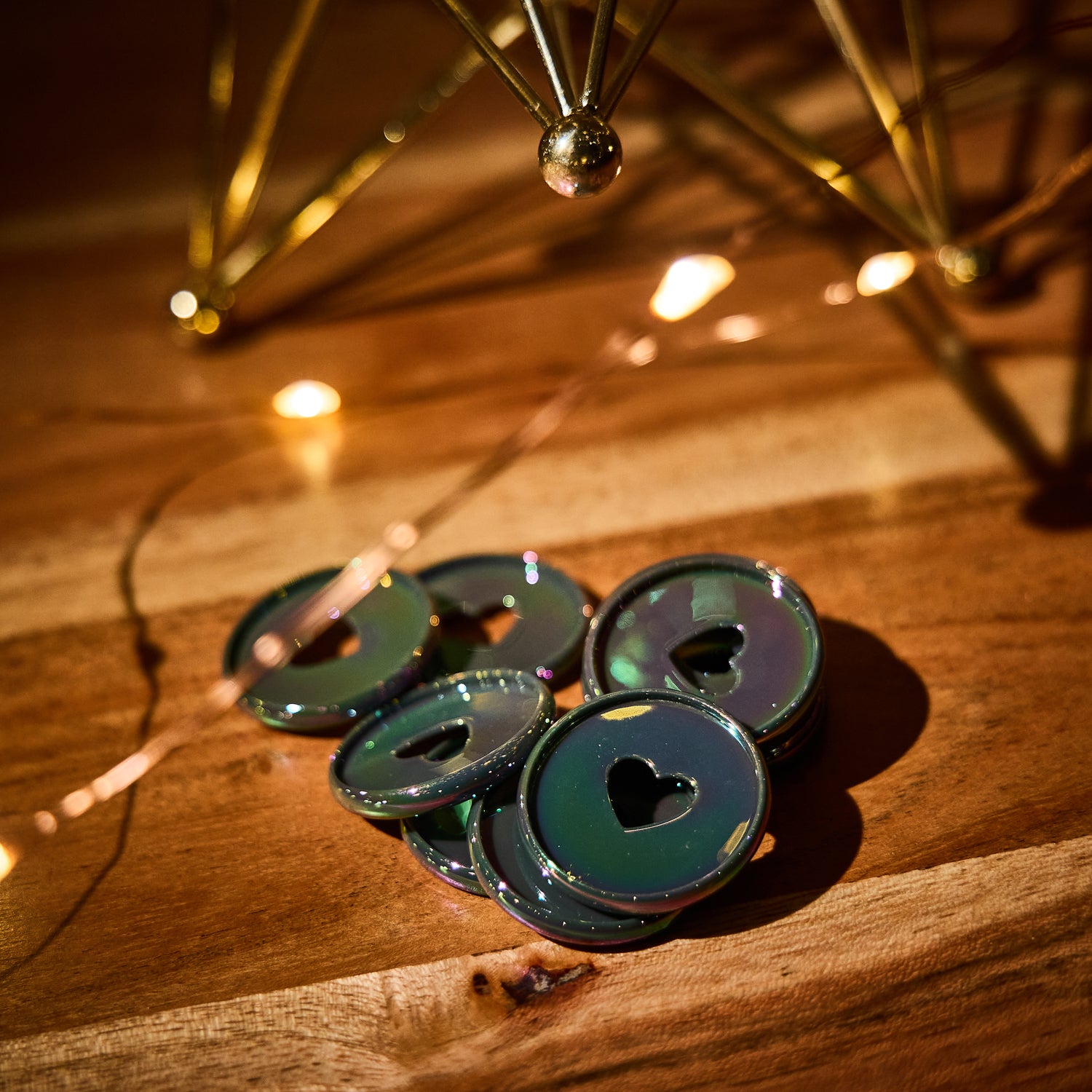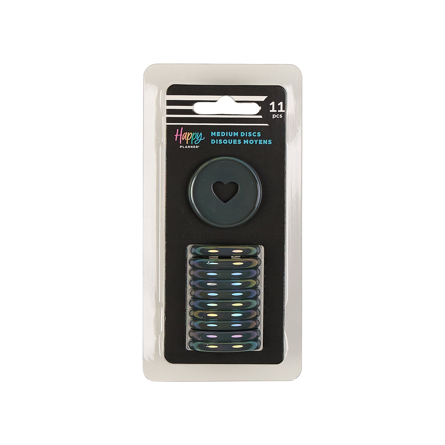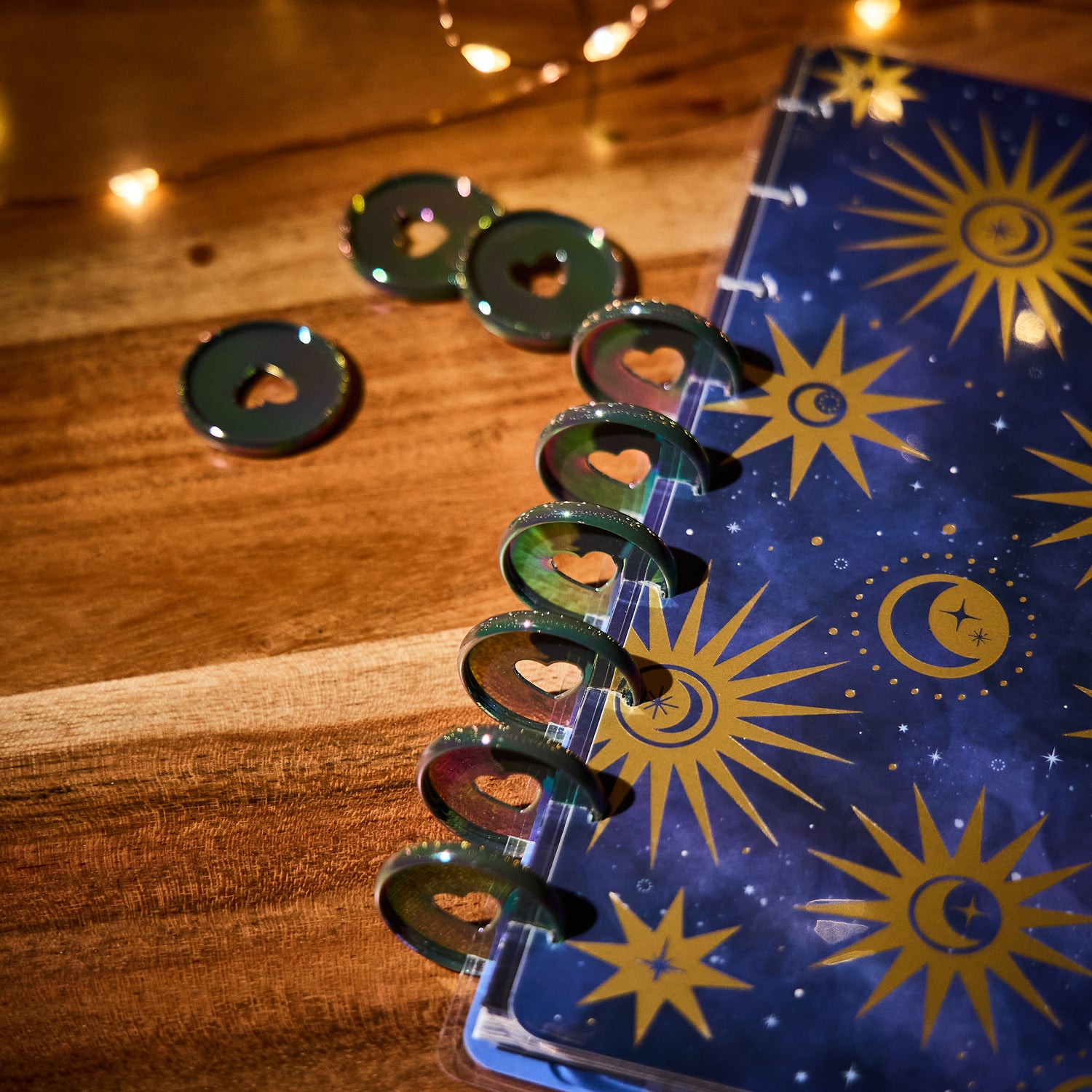 Add a bold, moody twist to your planner setup with this Iron Iridescence disc set. These medium-sized plastic discs feature a deep iron color with a subtle iridescent finish that shifts in the light—perfect for giving your planner that extra edge.