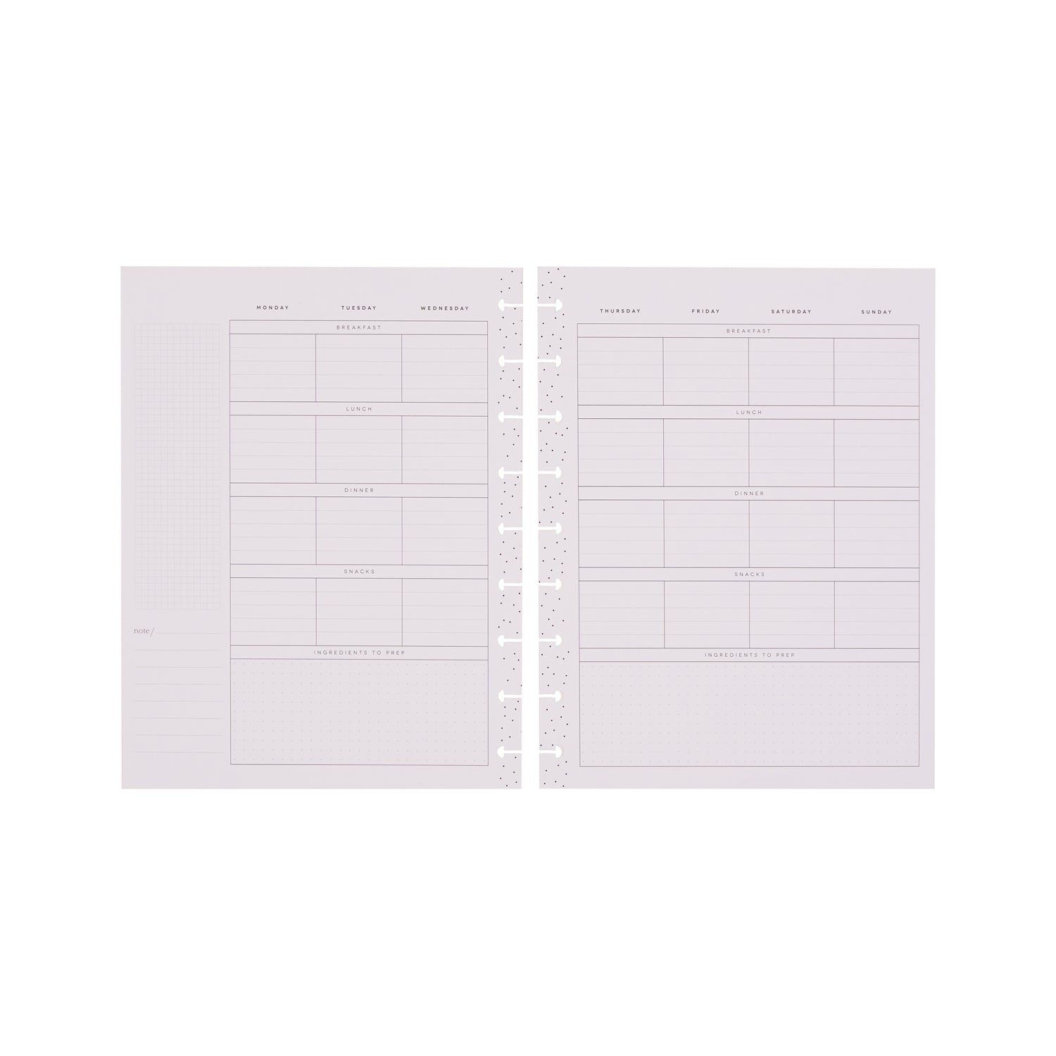 • Undated layout — Start anytime with 4 months of monthly and weekly meal planning pages.