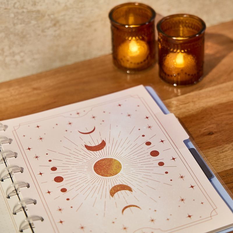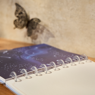 The sky is the limited with this Starcrossed theme dot grid notebook for the celestial planner. The dot grid pages have feature a crisp border and delicate starburst. Our dot grid notebooks can be used as a journaling space or an organizational tool to maximize your everyday productivity!