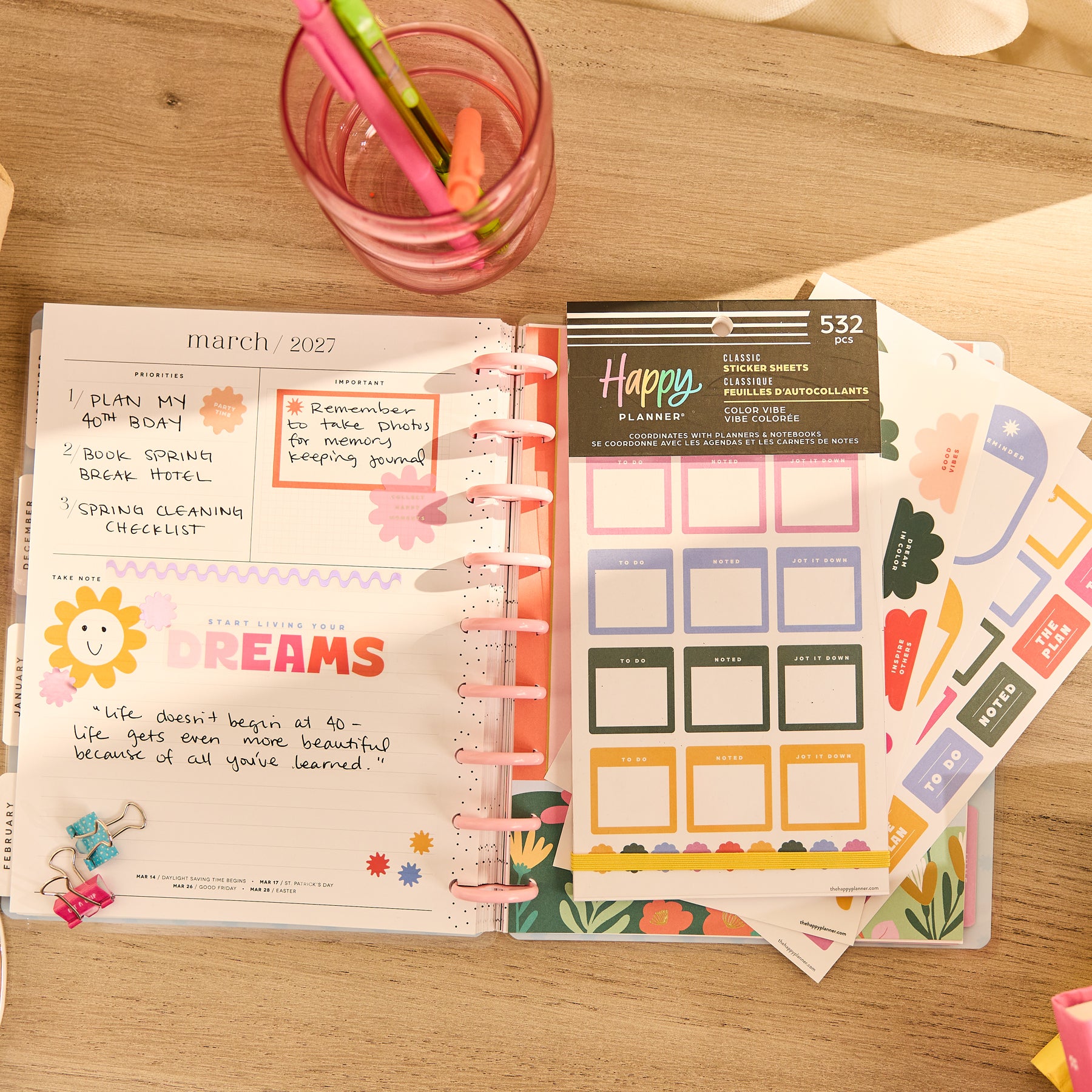 Filled with decorative boxes, functional labels, trackers, icons, and inspirational artwork, this sticker book helps you plan with ease while keeping your days bright, balanced, and inspired. Whether you’re creating a soft, serene layout or something bold and playful, Color Story has a theme for every mood.