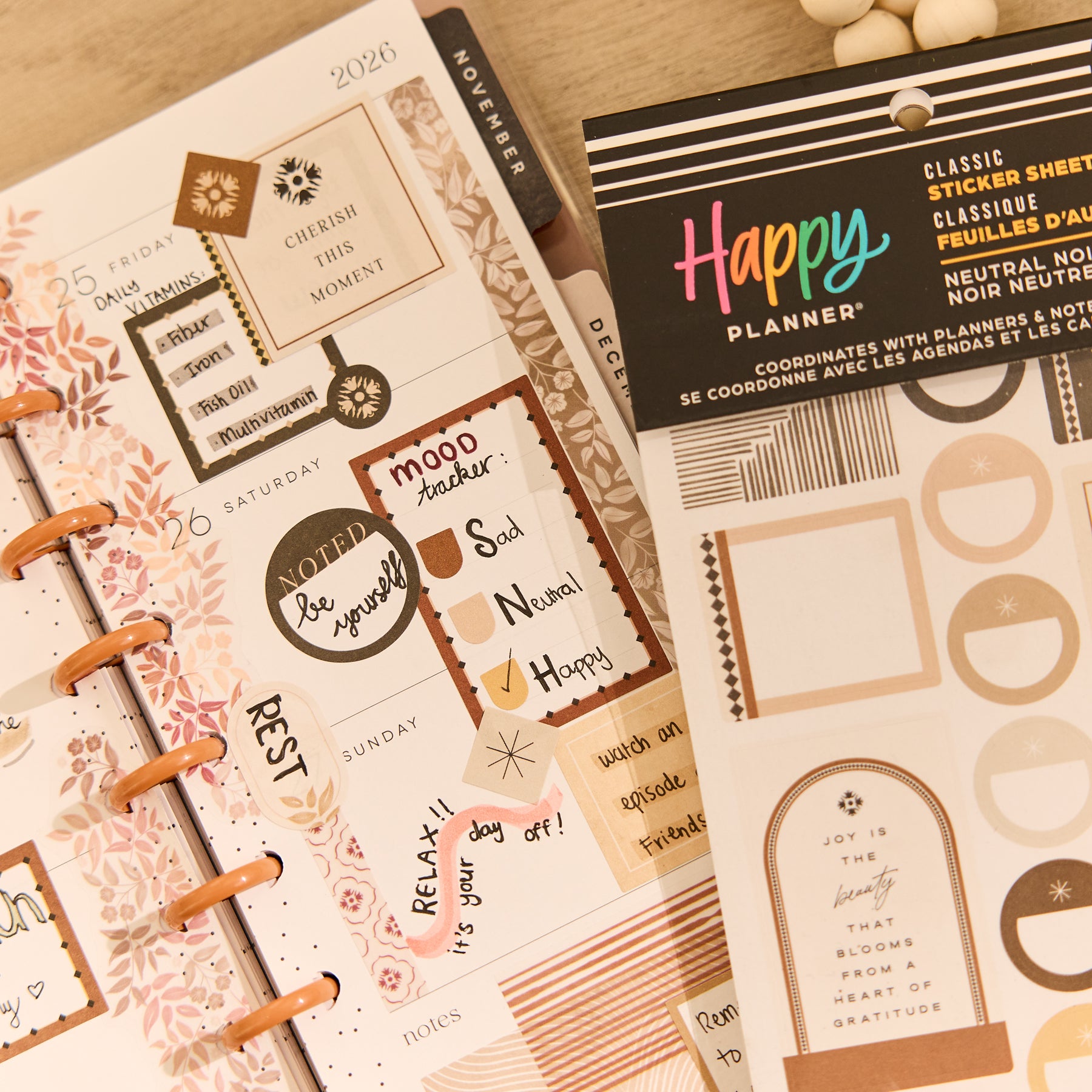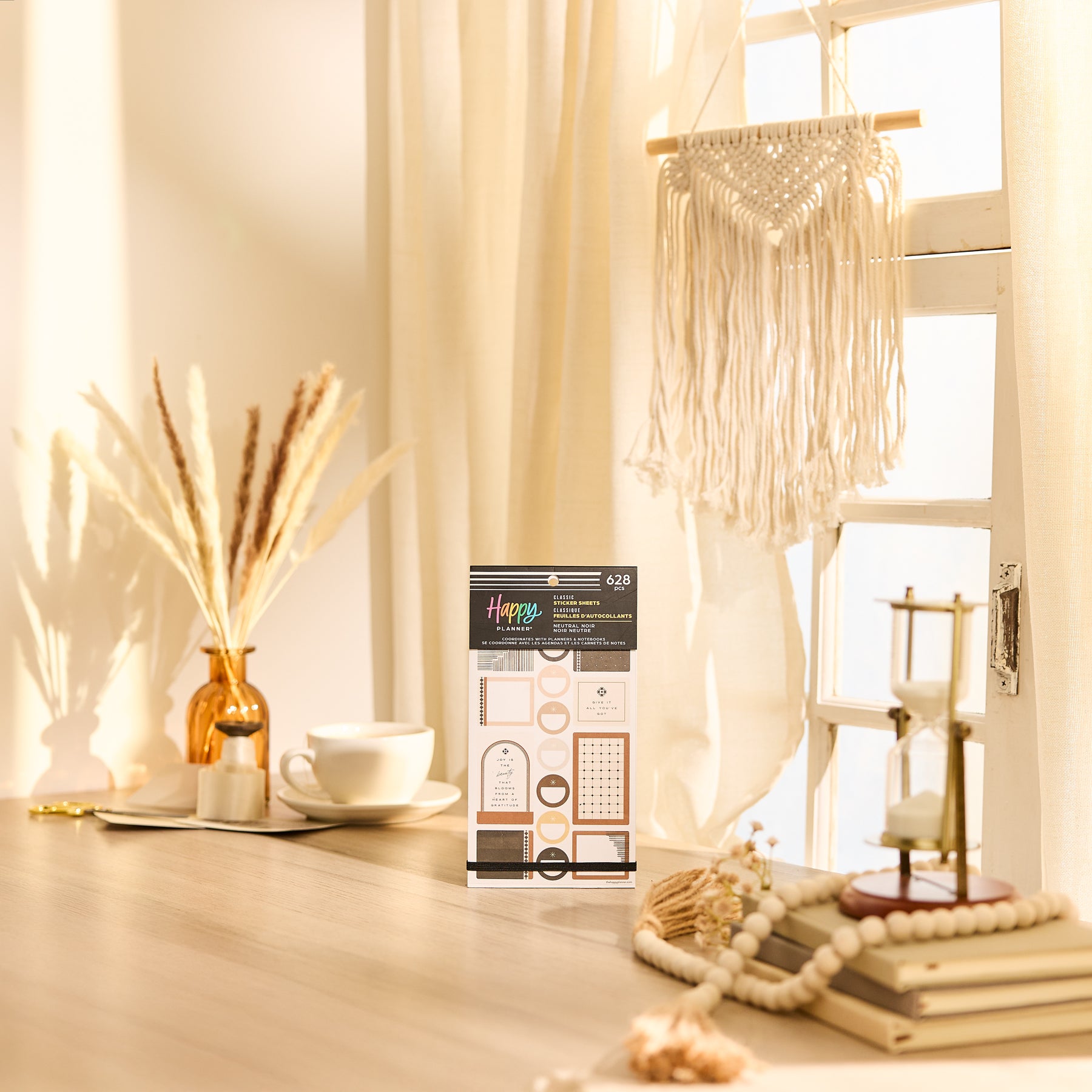 Elevate your planning with the timeless sophistication of the Neutral Noir Value Pack Stickers. This 30–sheet classic sticker book brings together rich neutrals, modern minimalism, and thoughtful inspirational quotes to give your spreads a chic, elevated touch. Whether you're planning your week, decorating your monthly overview, or adding a little motivation to your day, this sticker book delivers the perfect mix of function and style.