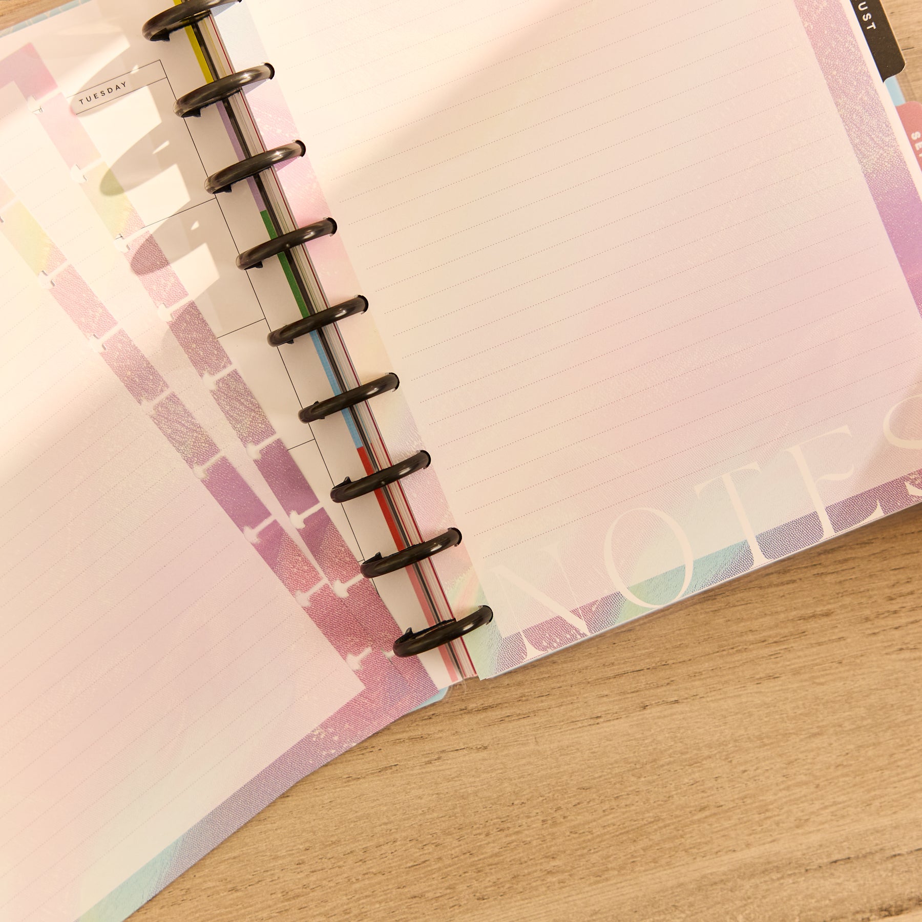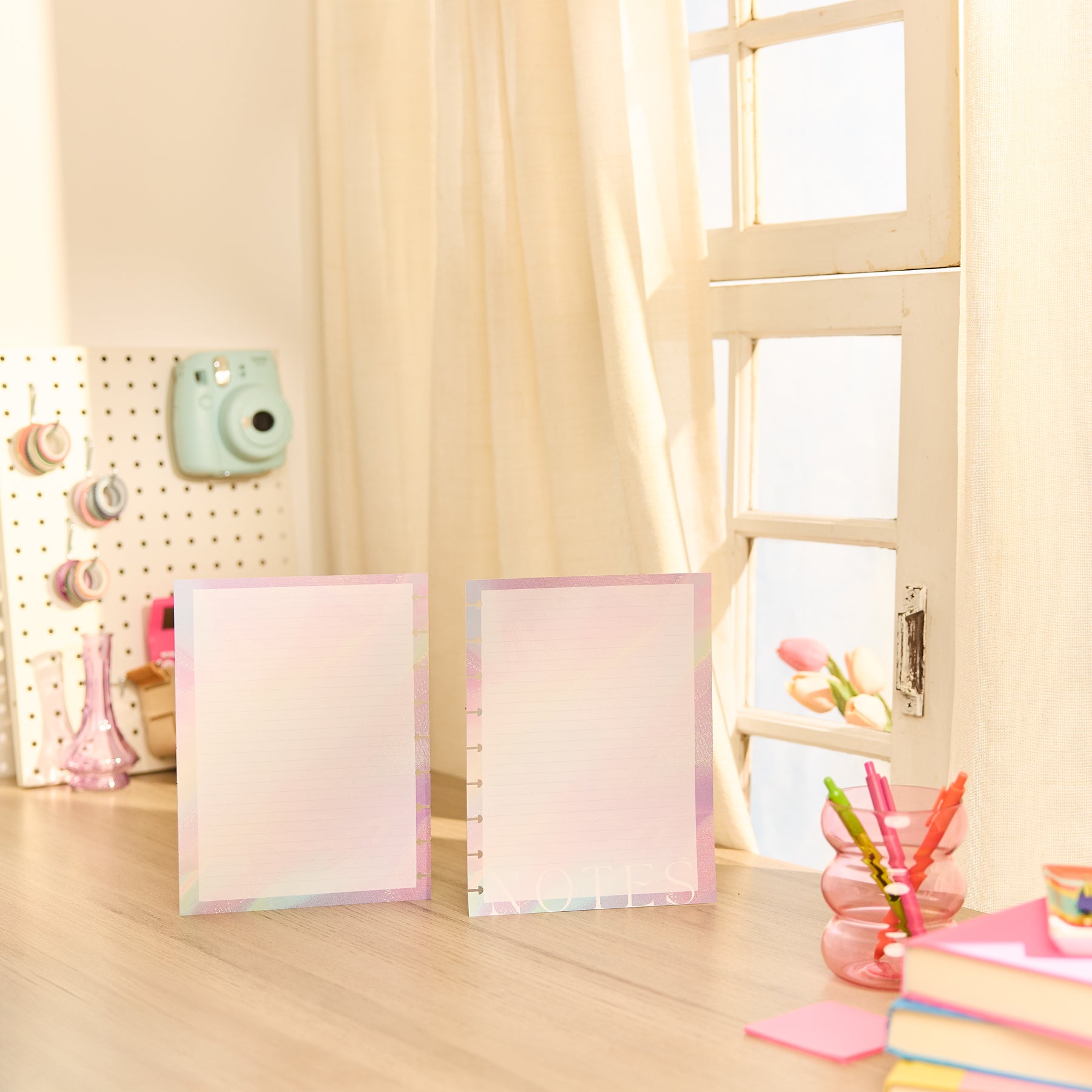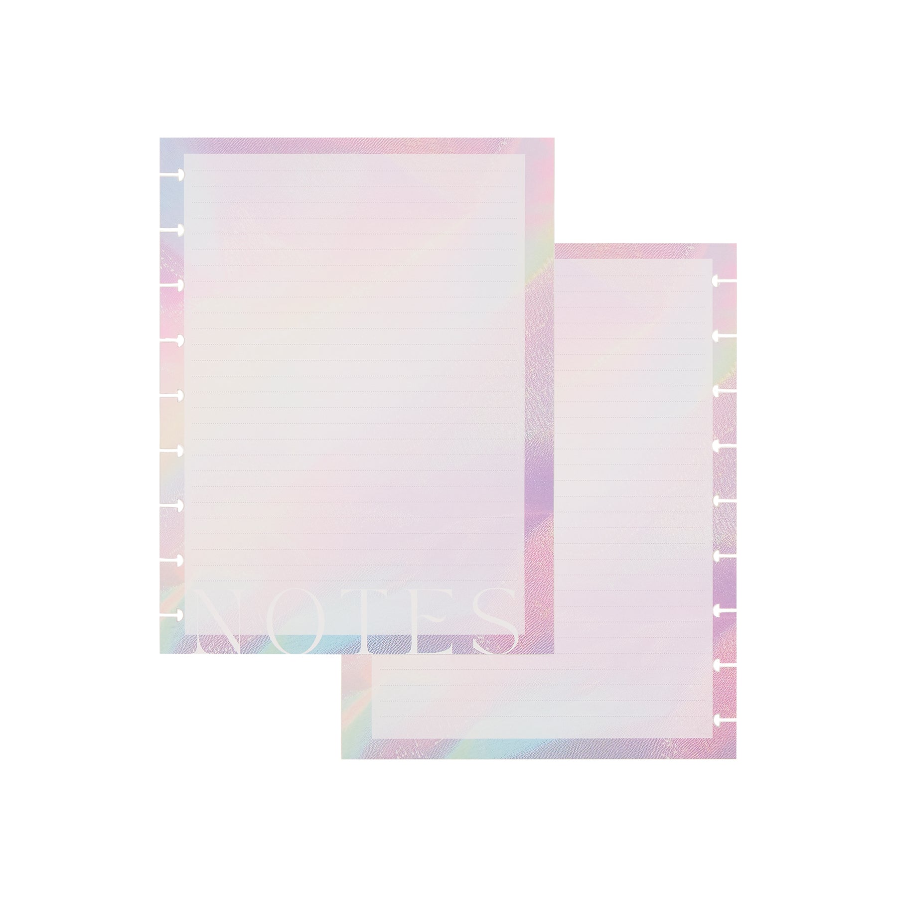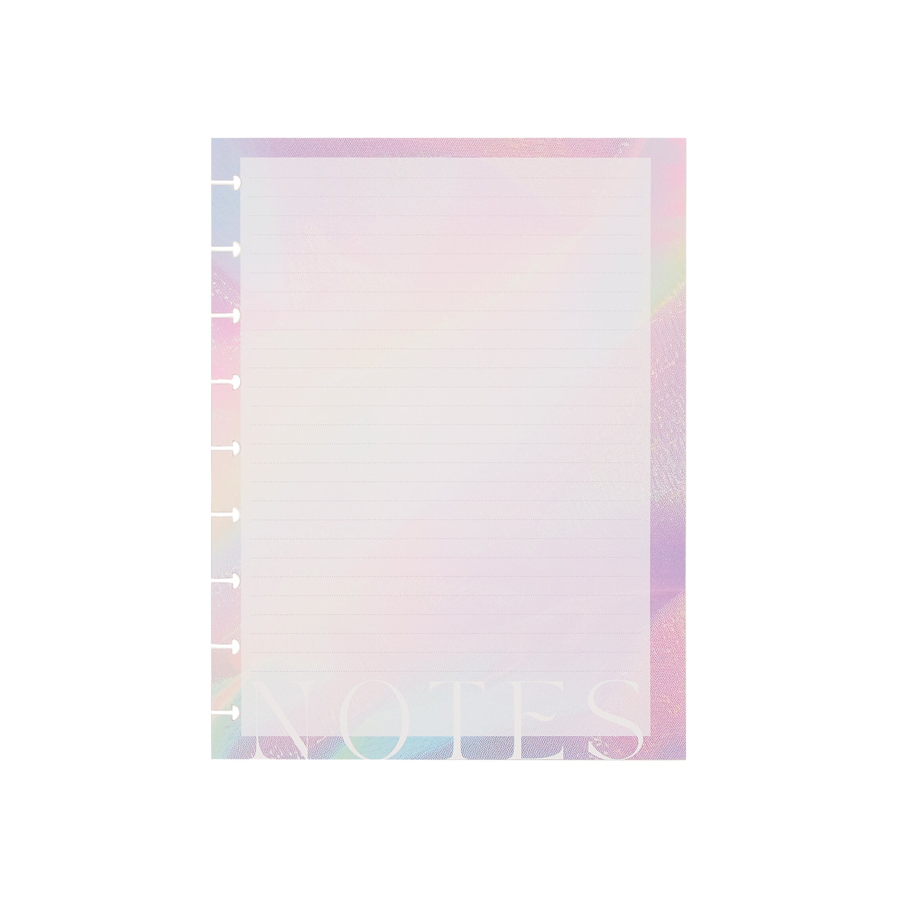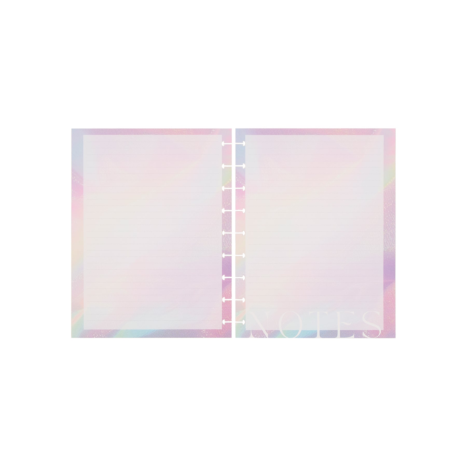 Add a little magic to your note-taking. This Prism & Pearl Classic filler paper brings soft iridescent vibes to every list, brainstorm, and doodle. With a dreamy pastel border and subtle dotted line layout, this pack is perfect for journaling, planning, or capturing everyday inspiration. Snap it right into your Classic size planner or notebook and let your ideas shine.