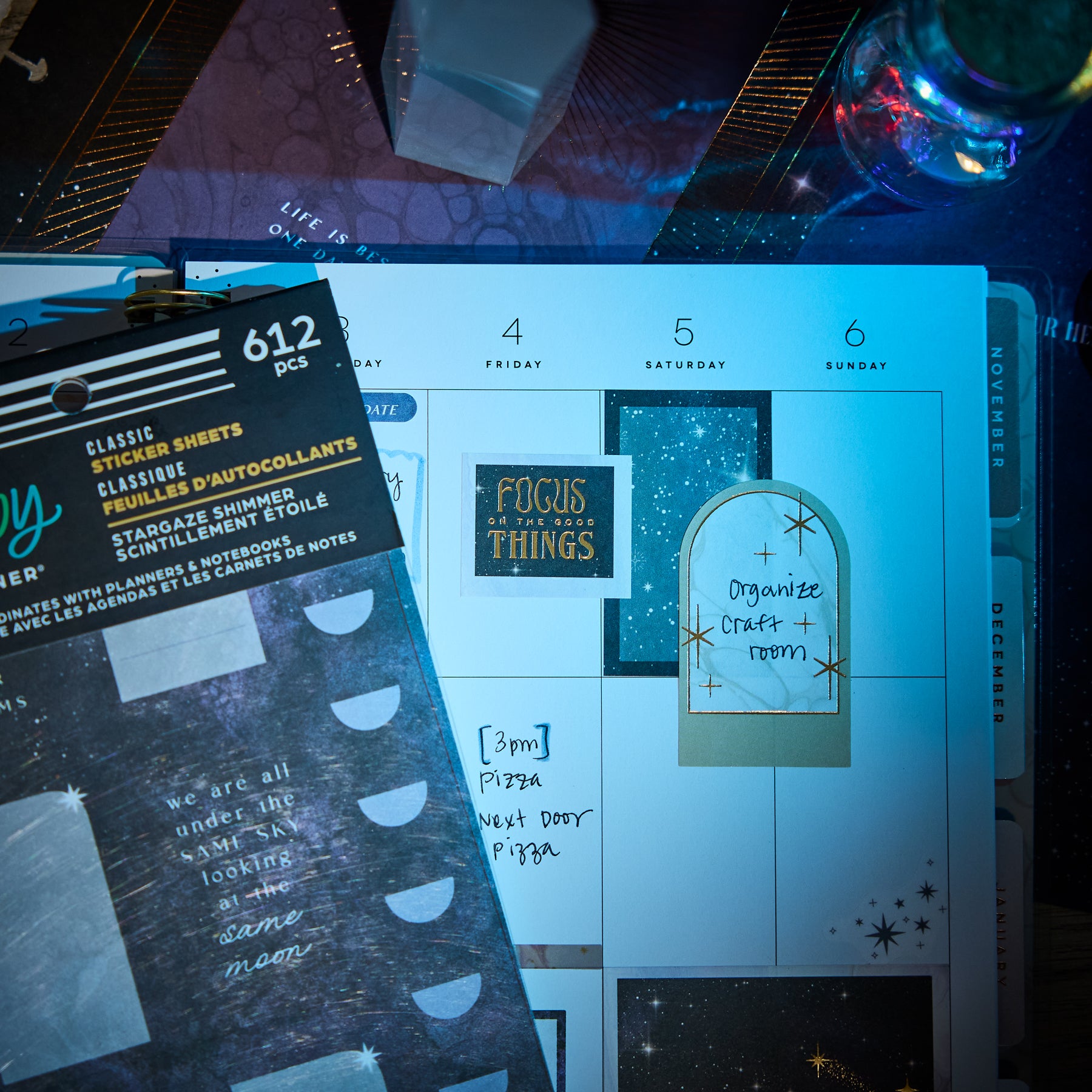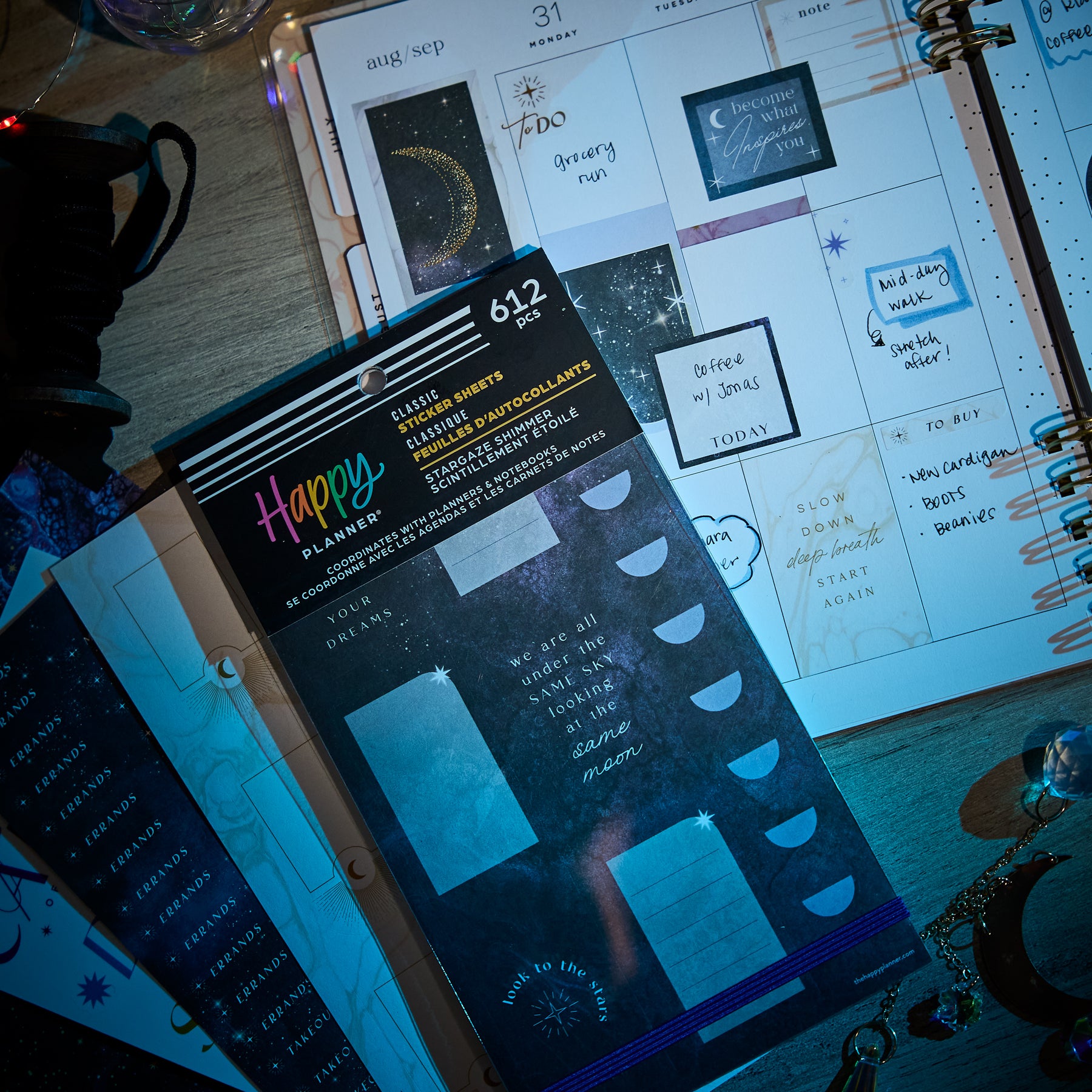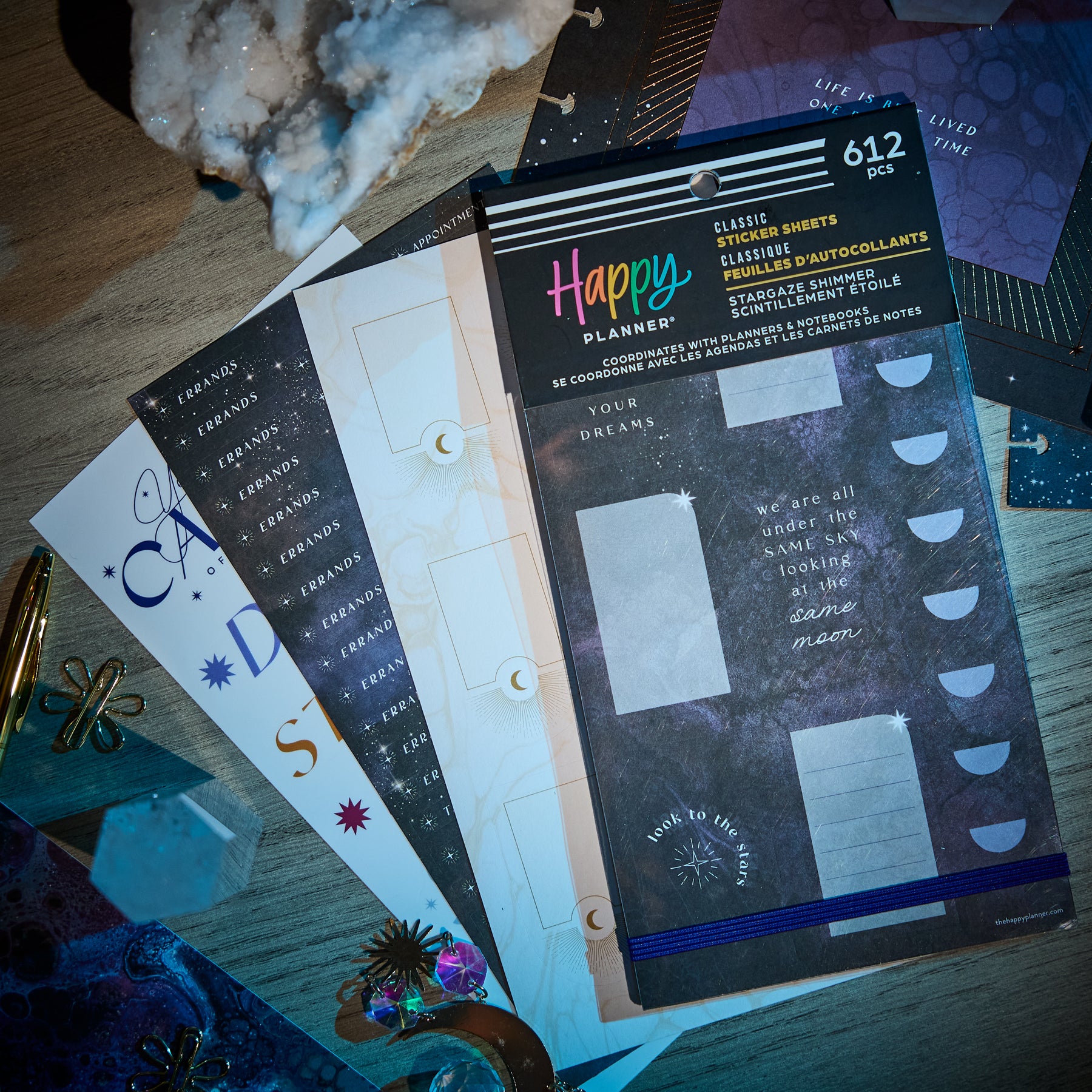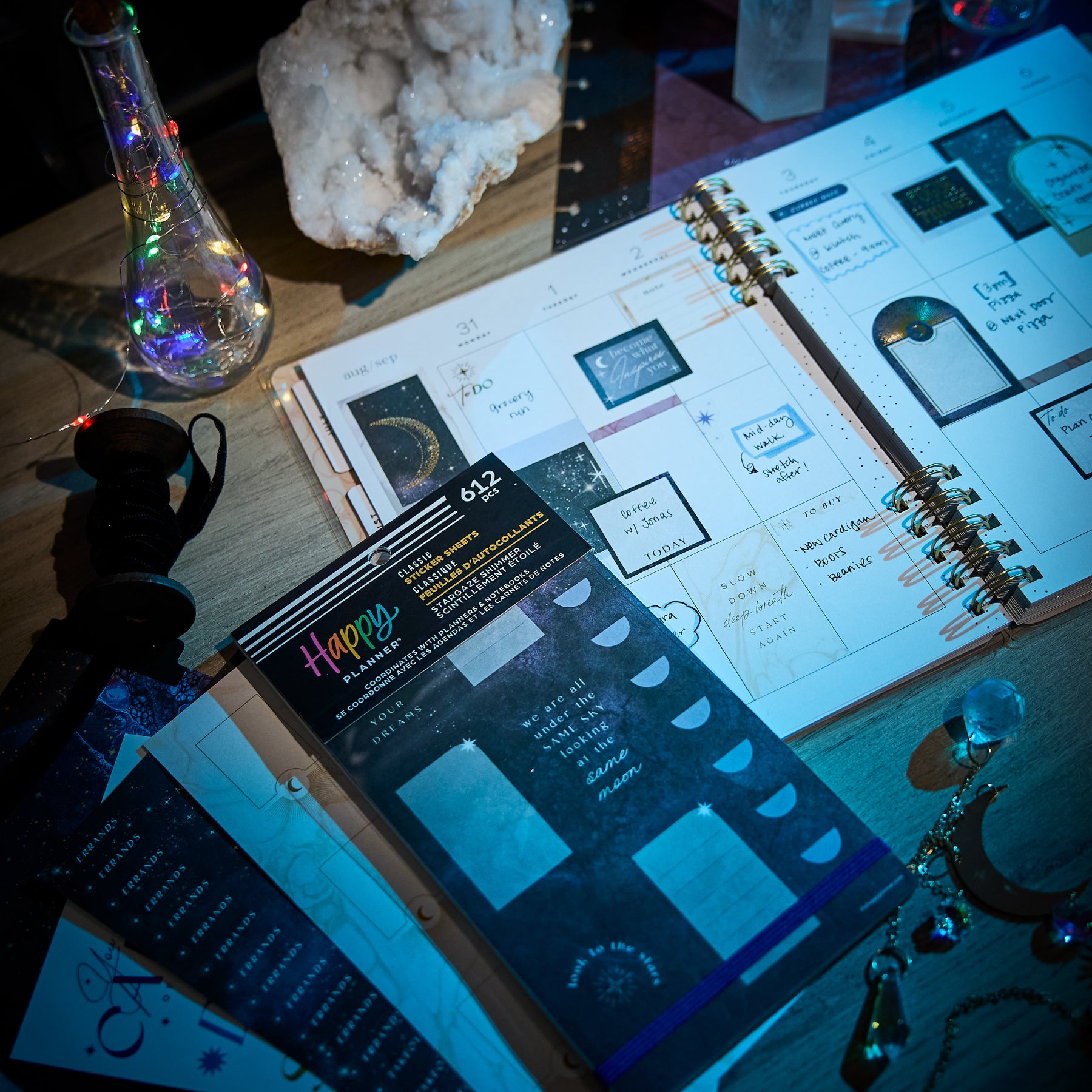 Bring a little celestial magic to your planning with the Stargaze Shimmer Value Pack Stickers. Designed with dreamy night-sky artwork, cosmic symbols, and soft shimmering accents, this collection adds an enchanting touch to any planner spread. Each sheet features a blend of functional boxes, decorative arches, moon phases, and metallic-inspired elements that feel both mystical and elegant.