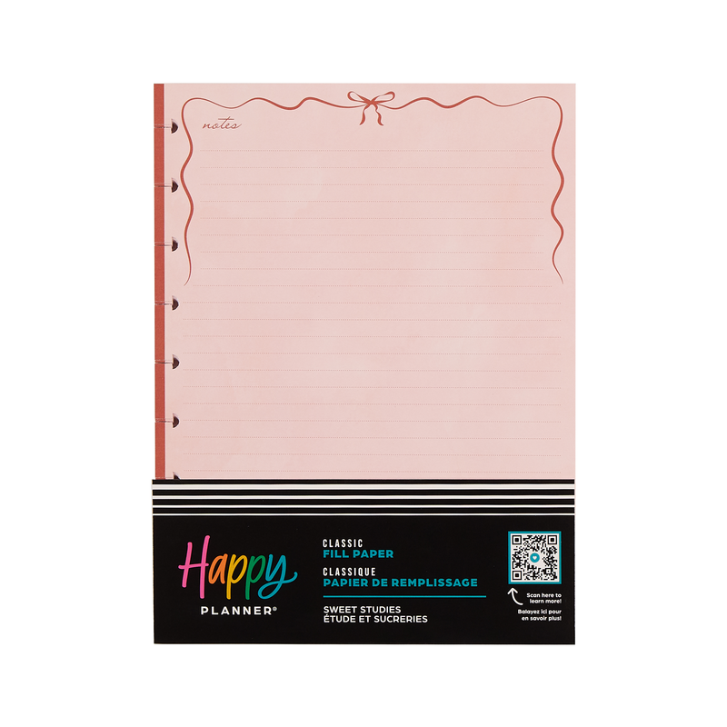 Make every note feel a little more you! The Sweet Studies Student Filler Paper pack is the perfect mix of function and flair for your Classic size planner. With soft pink hues, dotted lines, dot grid backs, and cute bow details, this 60-sheet set gives you the freedom to organize your notes, sketches, and to-dos in a totally charming way. 🎀