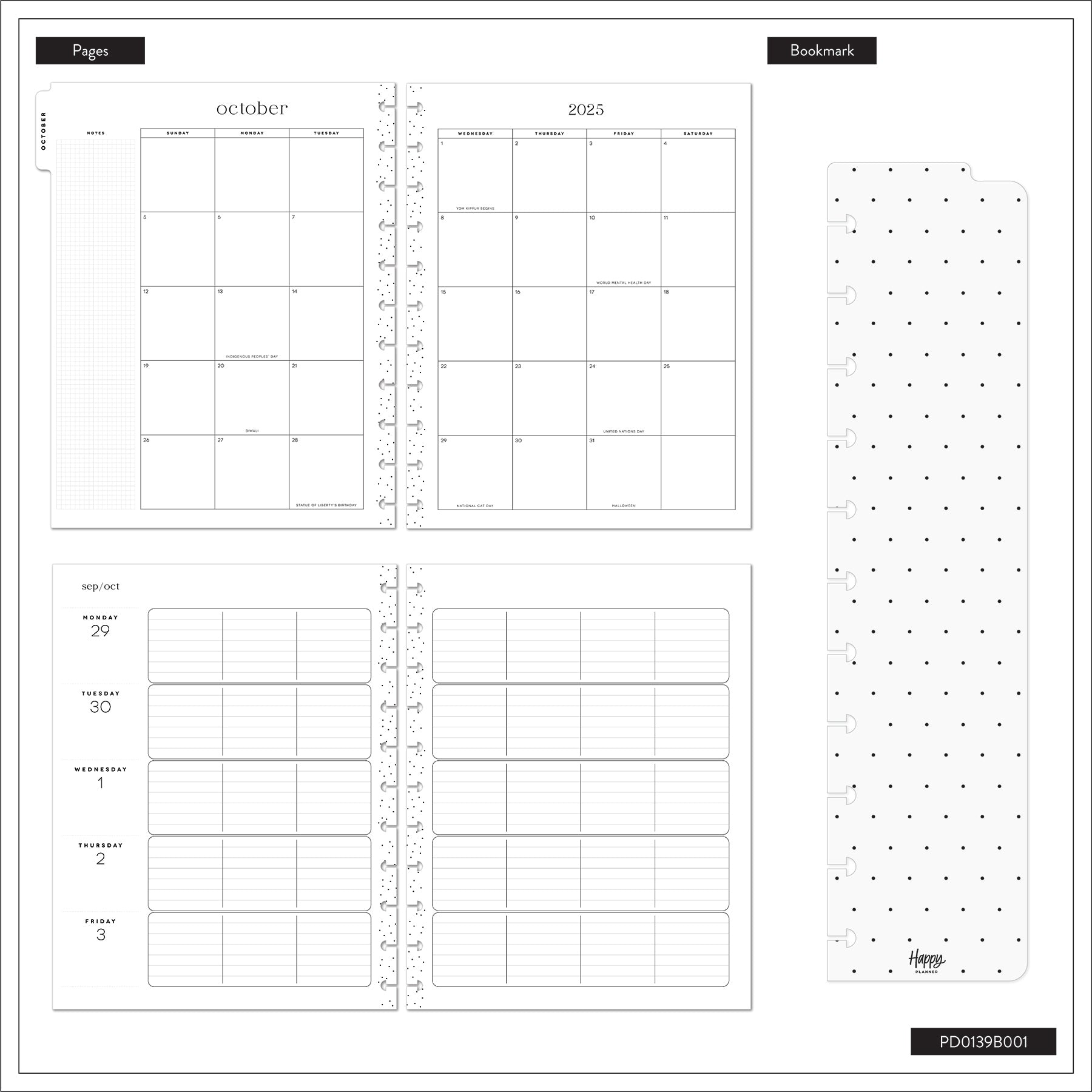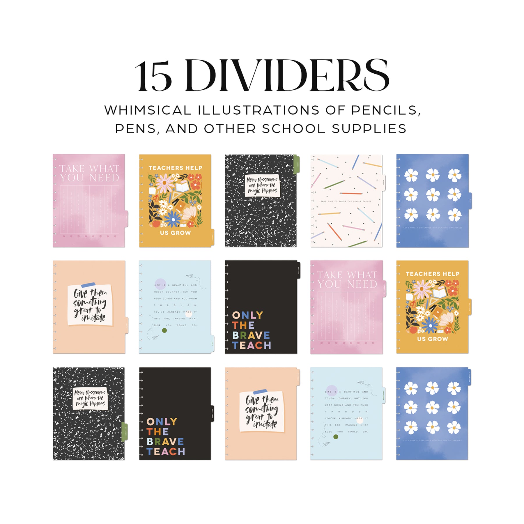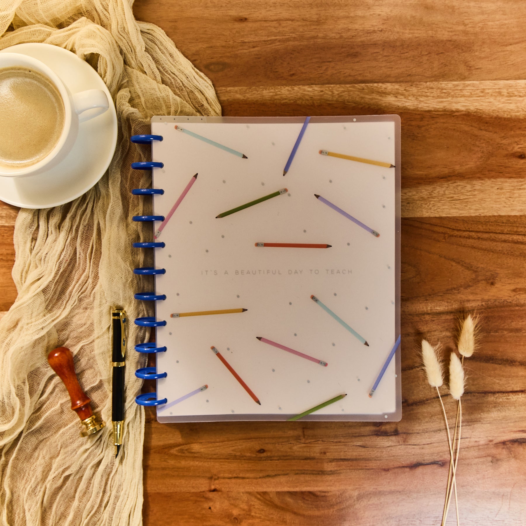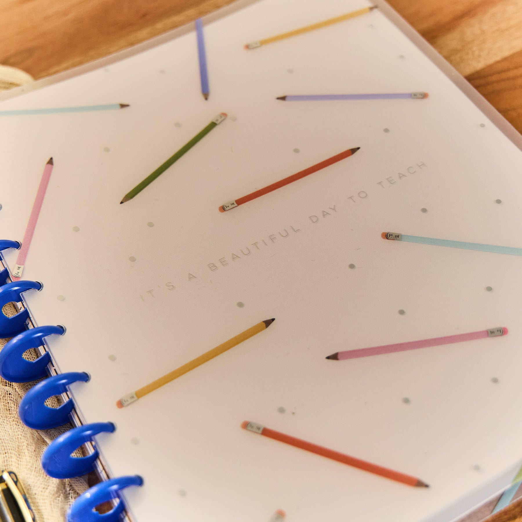 Built with the Happy Planner disc-bound system, this planner allows you to customize pages to fit your teaching style. Thoughtful extras like a snap-in bookmark, classroom-themed sticker labels, note pages, and a yearly calendar overview make planning easier and more enjoyable—so you can focus on what matters most: your students.