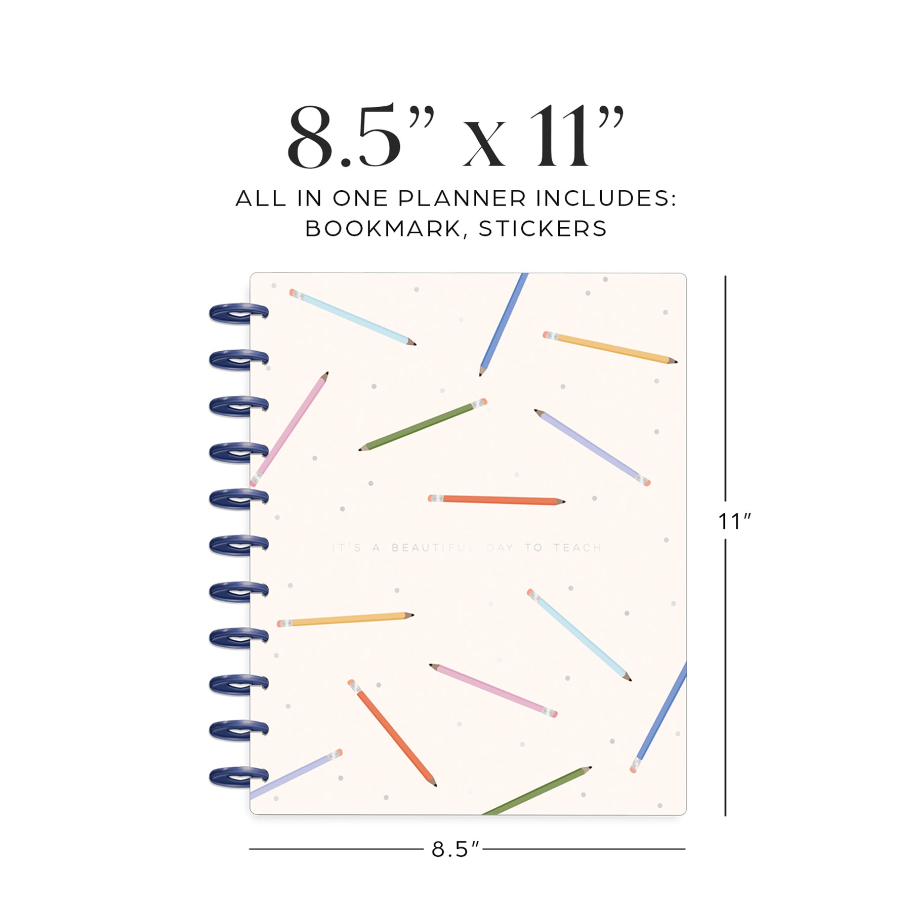 The Big size (8.5" x 11") gives you plenty of space to plan, write, and track student progress. Featuring a Monday–Friday teacher layout, this planner includes monthly and weekly spreads plus classroom checklist pages to help streamline your workflow. Cheerful covers and dividers with whimsical school-themed illustrations and uplifting messages keep you motivated from the first bell to the last.