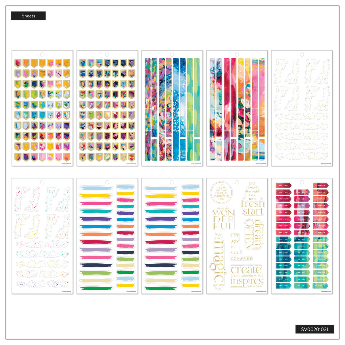 Dive into a dreamy splash of color! The Abstract Watercolor sticker book is a vibrant burst of creativity, ready to light up your planner with artistic flair.
