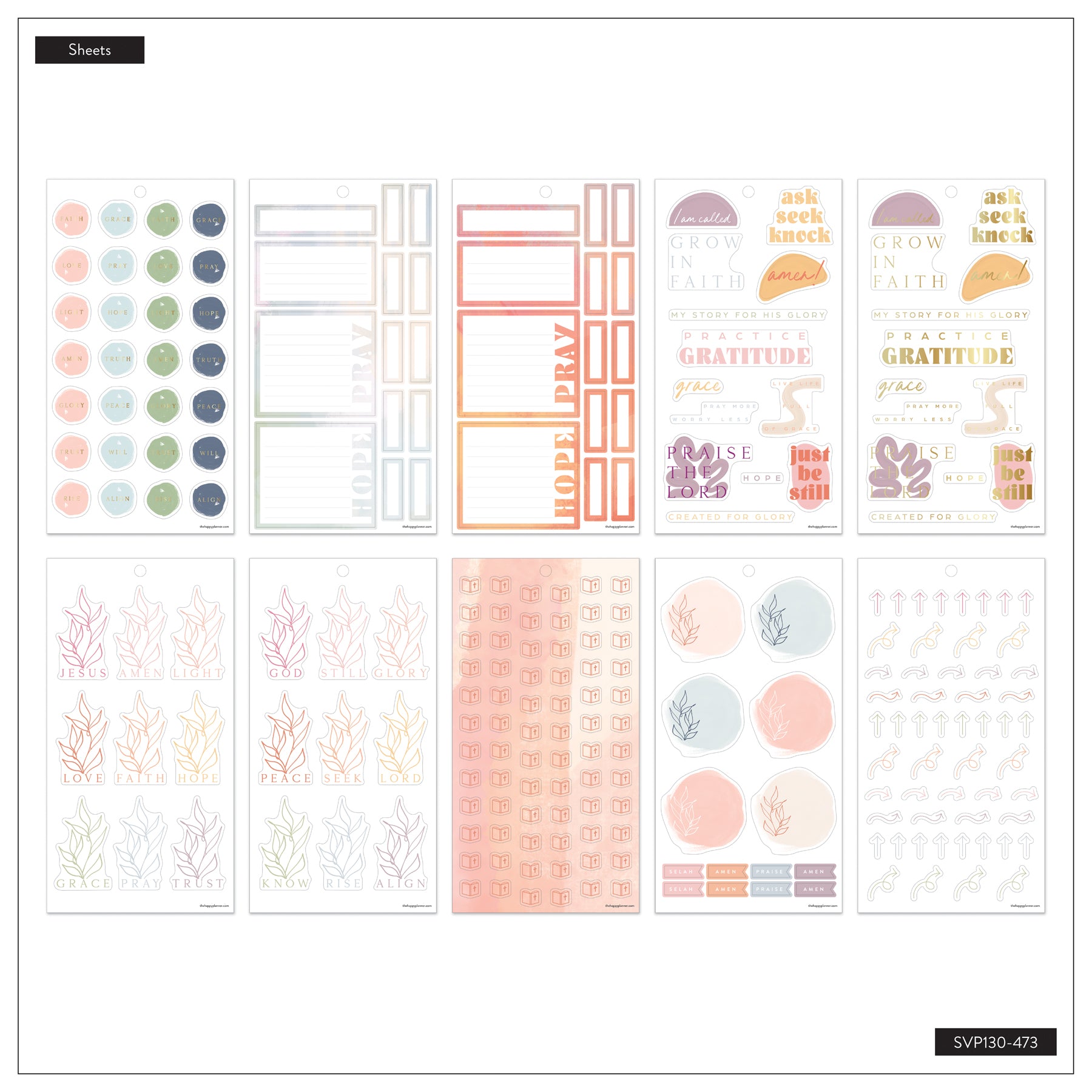 Faith planning made simple. The Rise & Align Faith Value Pack Stickers are here to help you stay grounded, reflect, and track your spiritual journey. With prompts for scripture, prayers, and daily reflections, these stickers bring intention and encouragement into every week. Use them to create meaningful pages, journal entries, or faith-based spreads that keep you inspired and aligned.