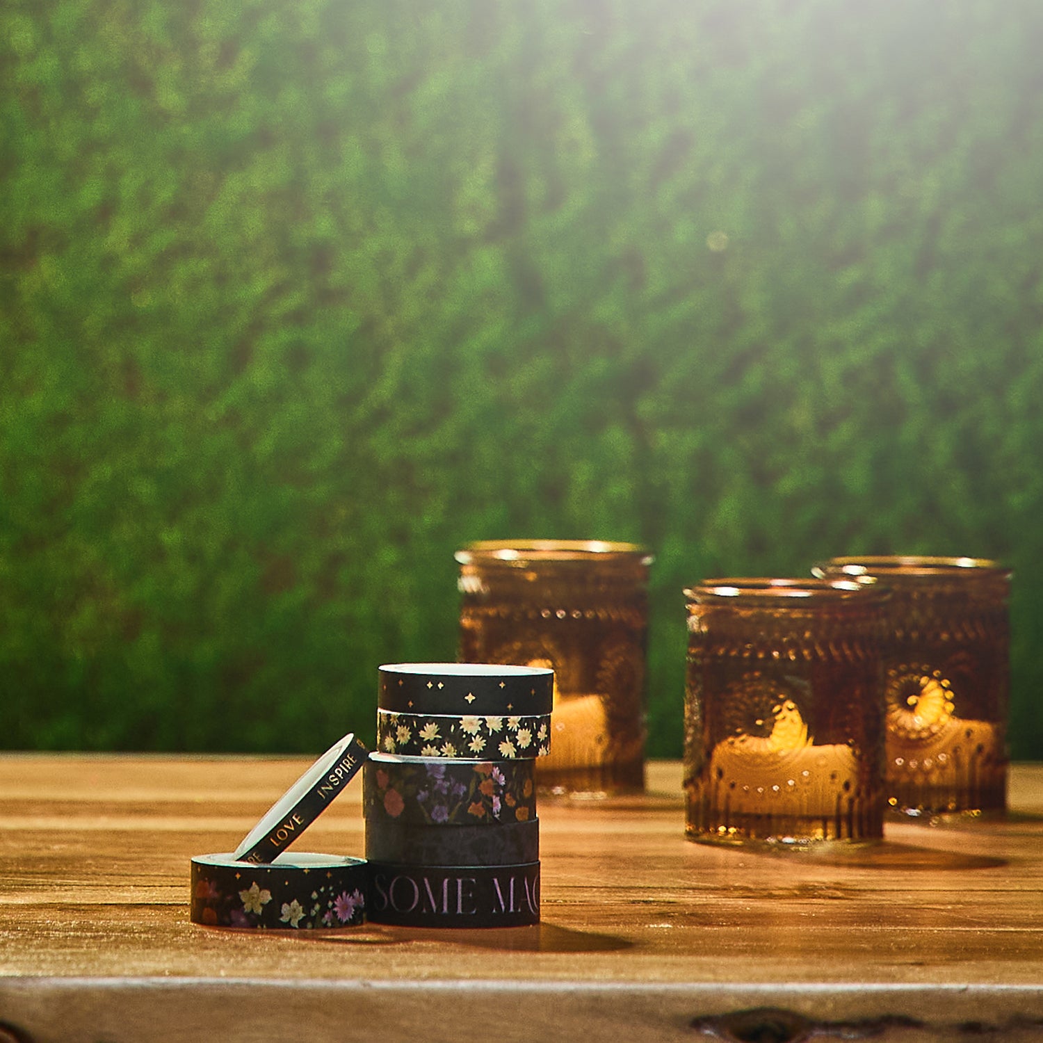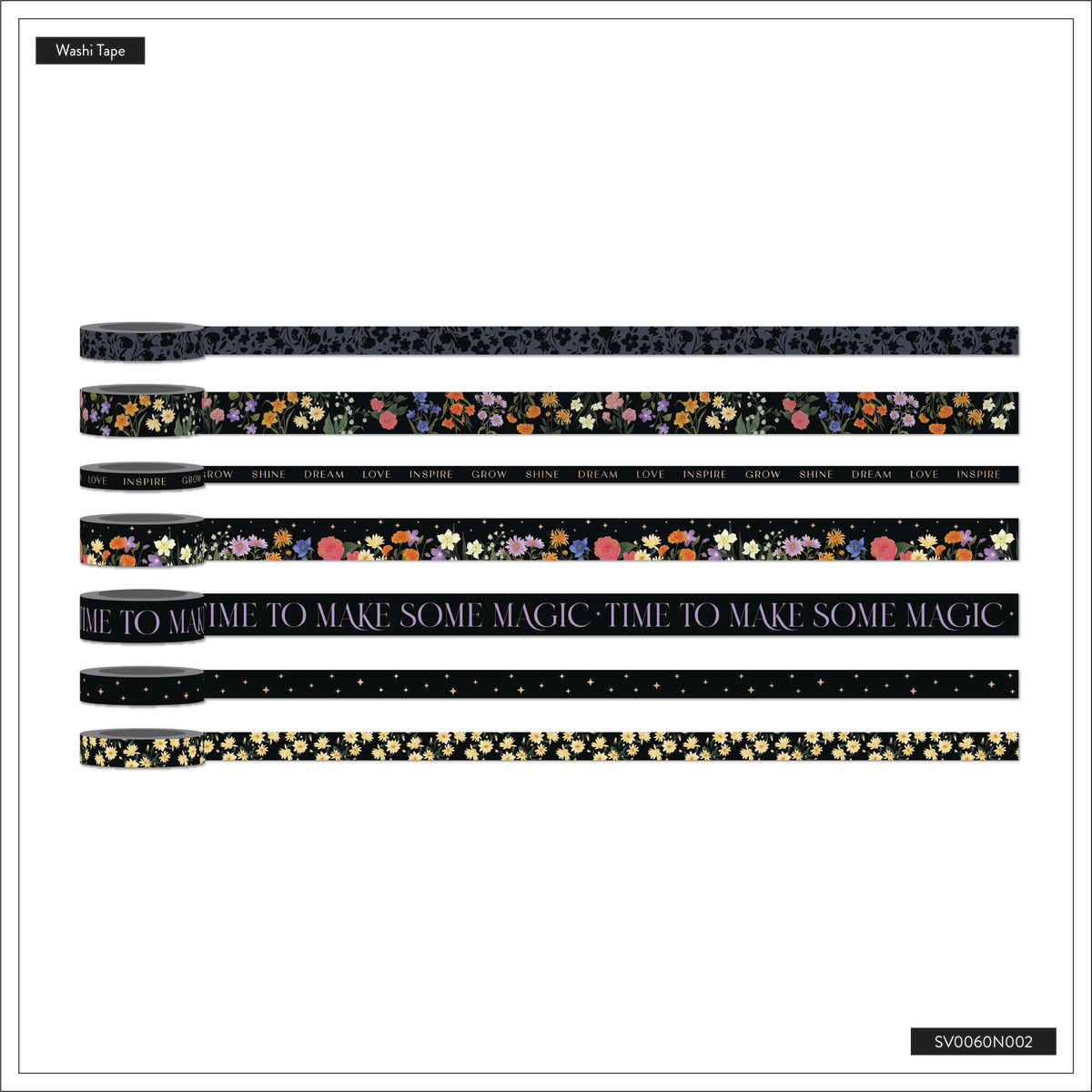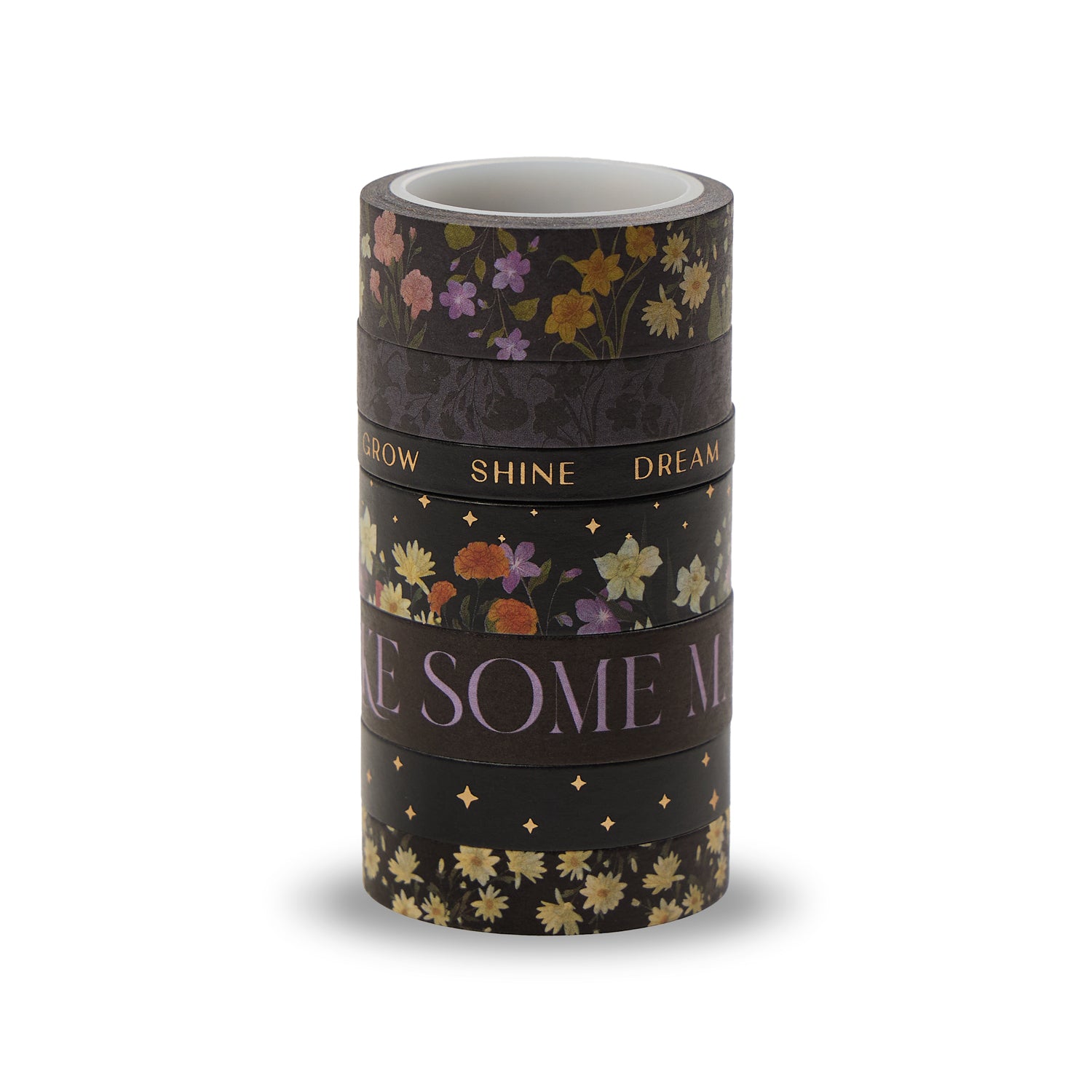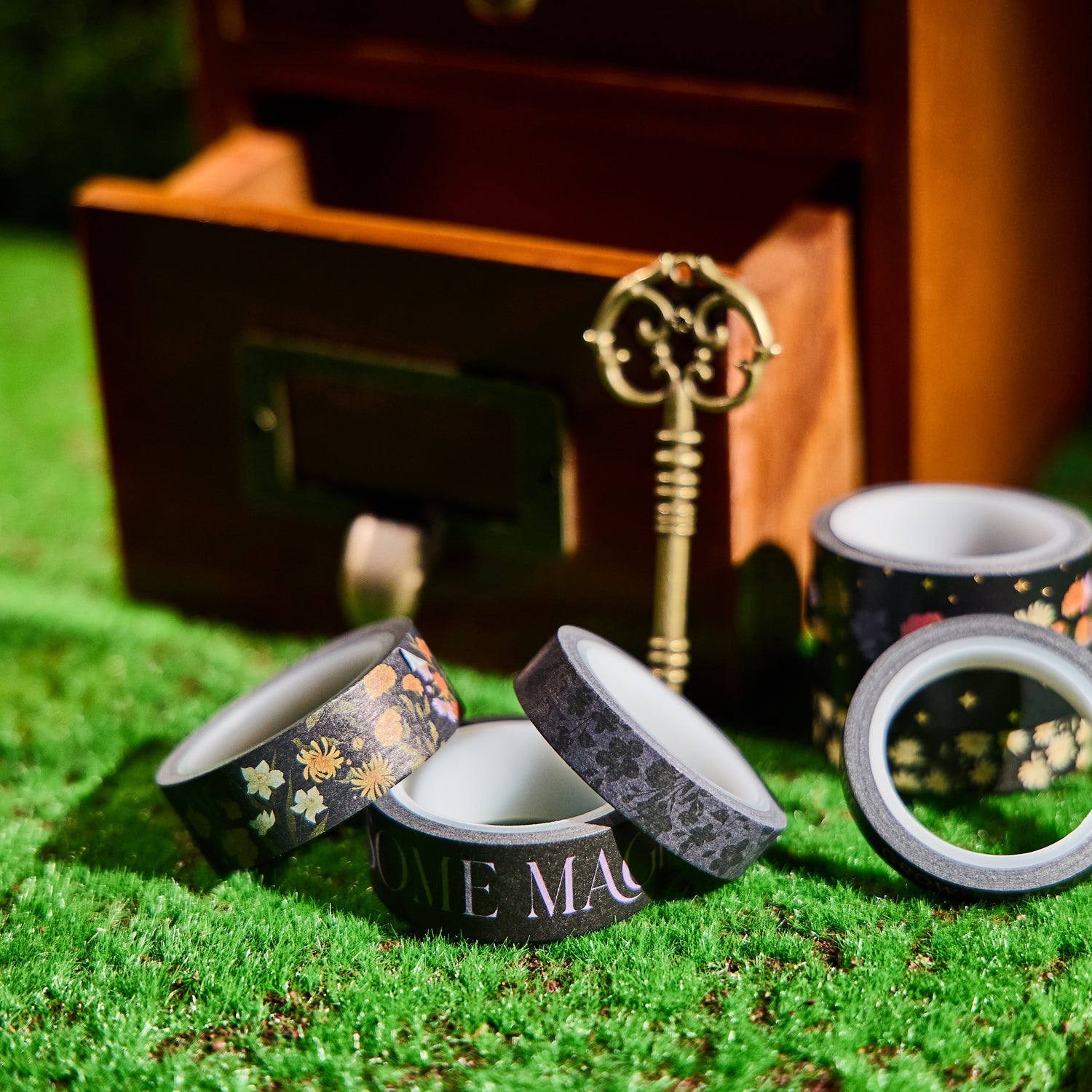 Add moody magic to your planner spreads with this enchanting washi tape set. Featuring dark floral motifs, gold foil accents, and celestial-inspired details, these decorative rolls are perfect for creating bold borders or dreamy highlights.
