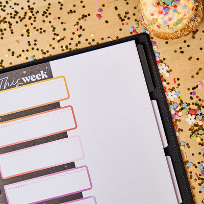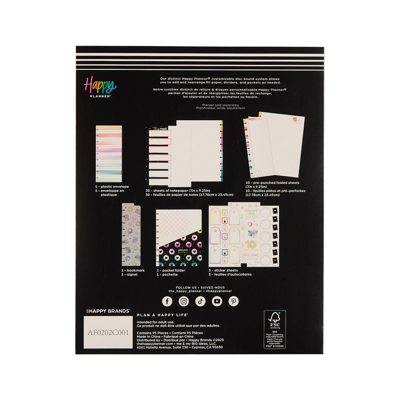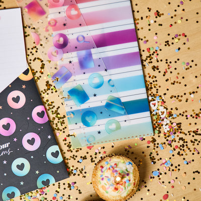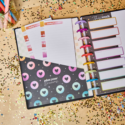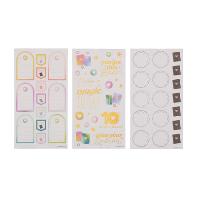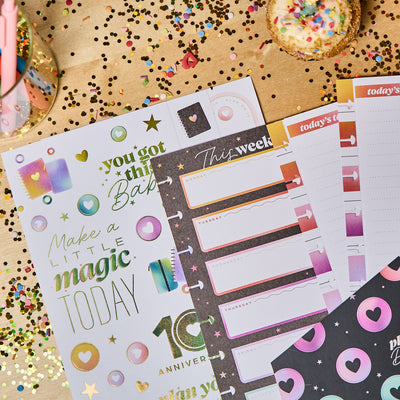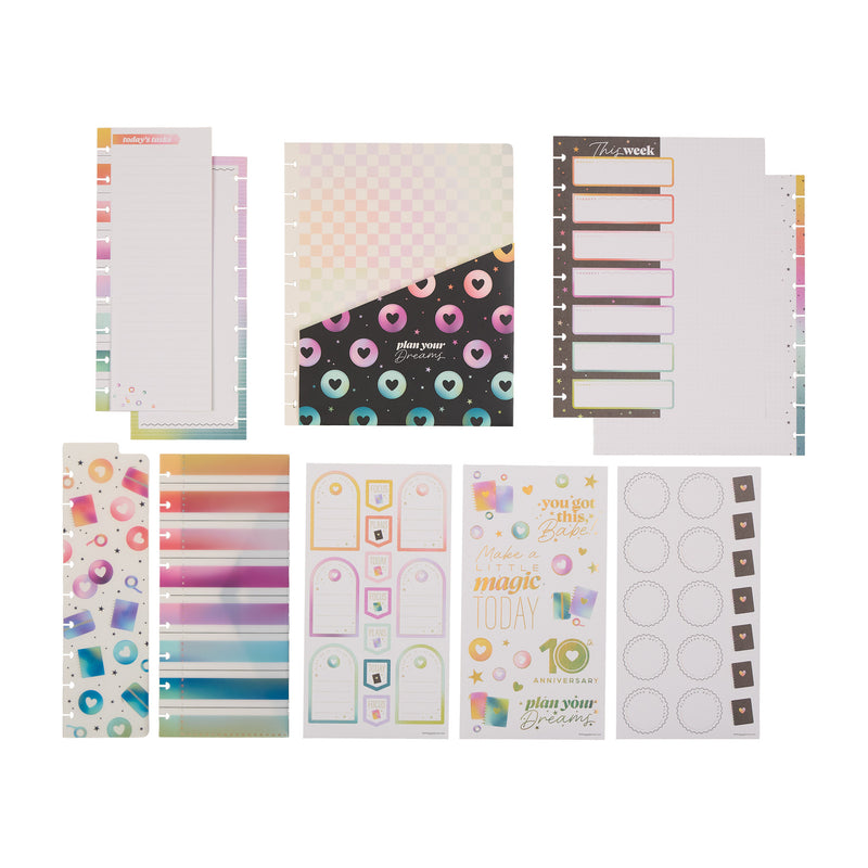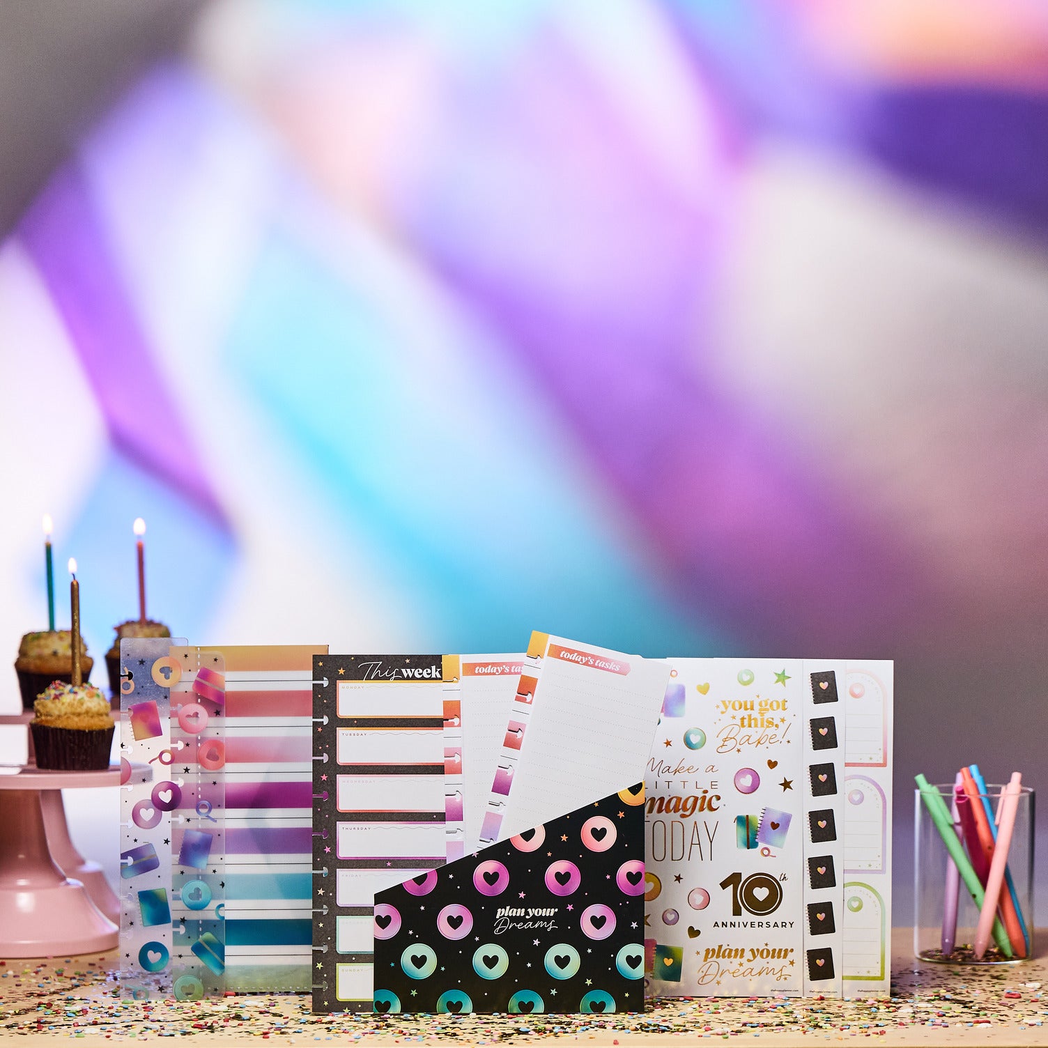 Celebrate a decade of planning with this vibrant 10 Years of Happy Accessory Pack. Designed to match our signature style, this pack features coordinating accessories in a colorful celebration of our iconic heart discs—complete with stars, gradients, and nostalgic charm. It’s the perfect add-on for customizing your Classic Happy Planner.