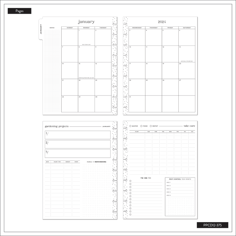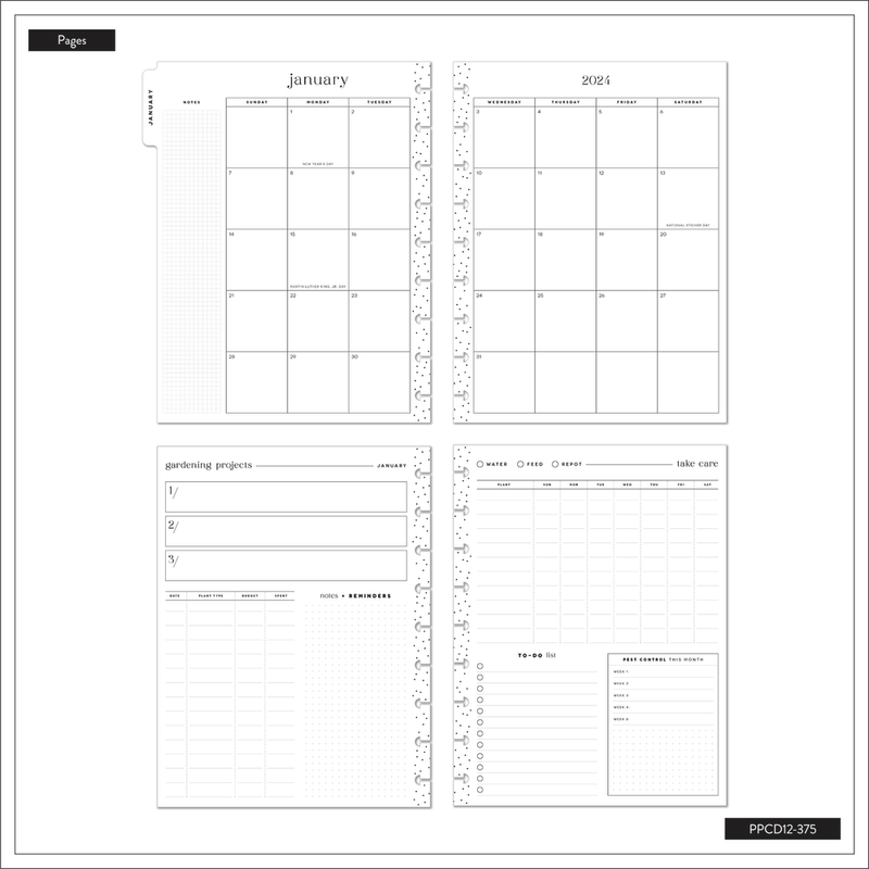 Get ready to plan! Dated planners come in 12-month and 18-month layouts. Choose what works for you! These planners come with dated monthly calendars and weekly pages.