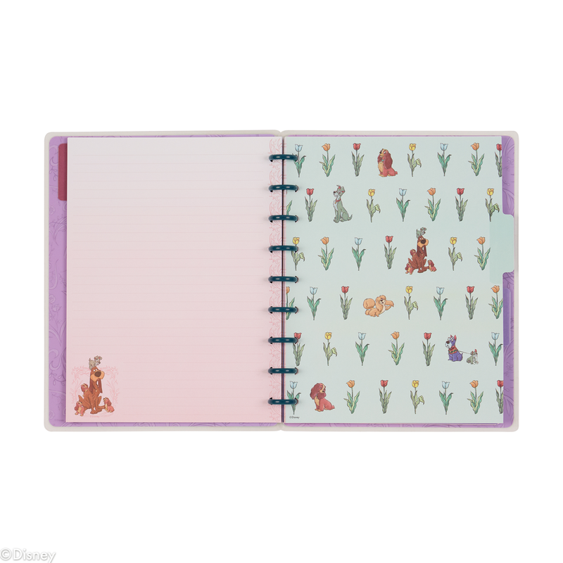 Look for the beauty all around with this Disney Lady & The Tramp Classic size notebook. Enjoy the fanciful page designs featuring characters from the Disney Film Lady & The Tramp like Trusty, Jock, and Peg! Make your notes inspire your organizational process and keep it all together with the right planning tools.
