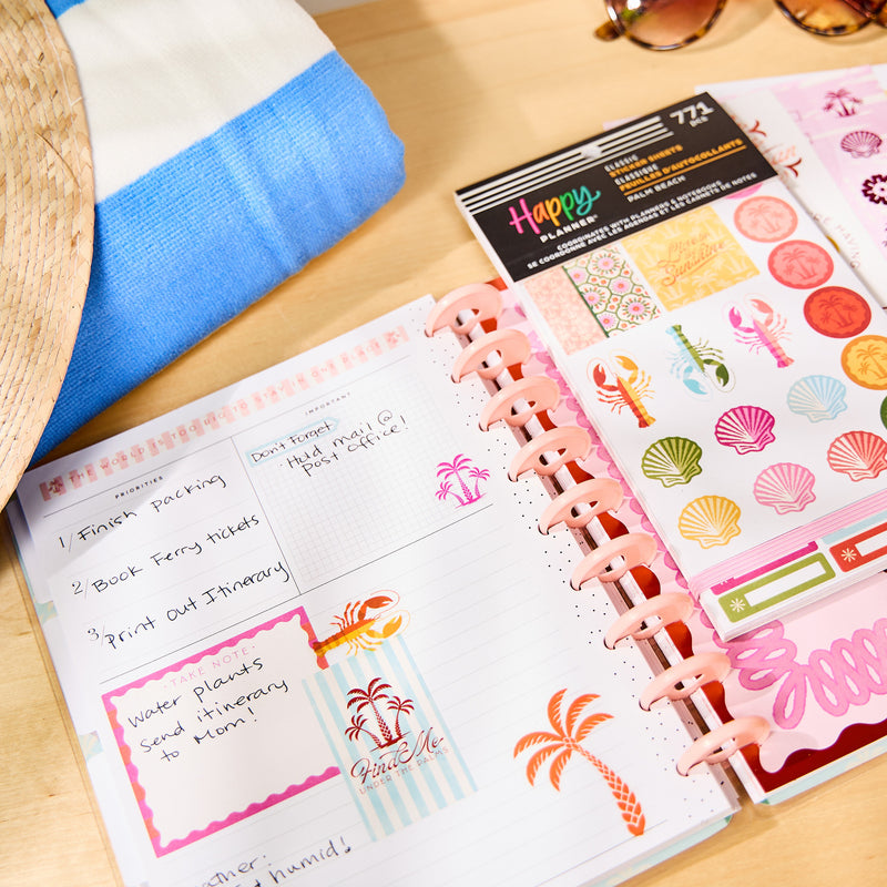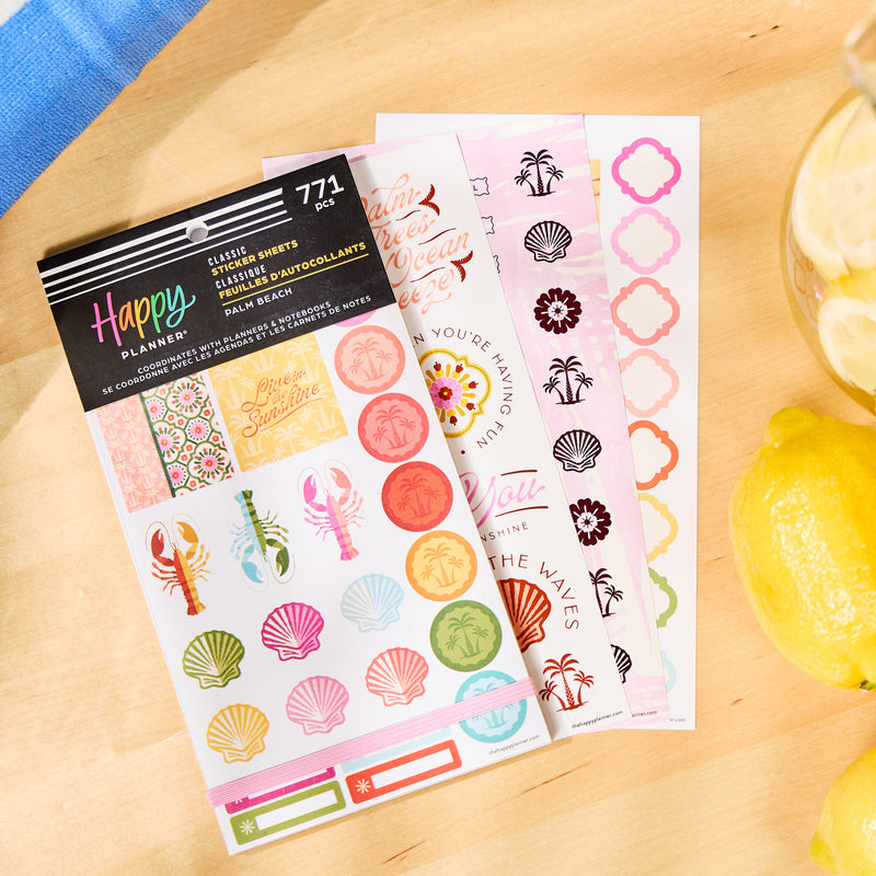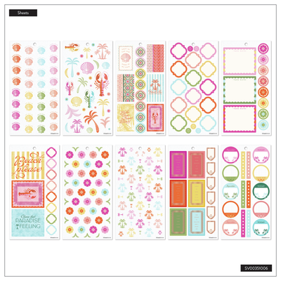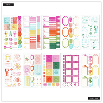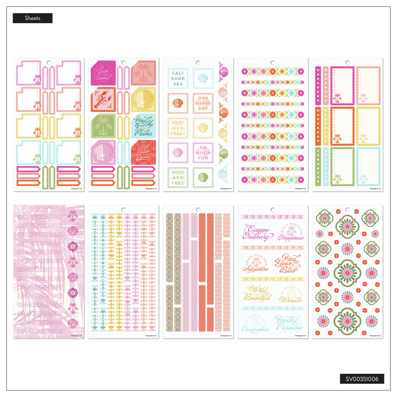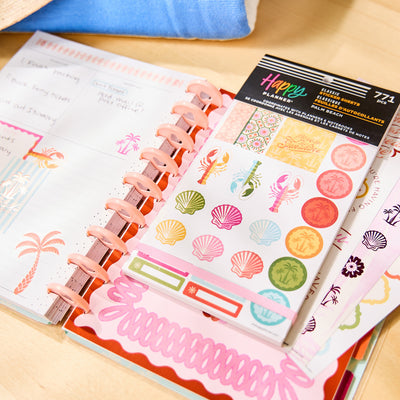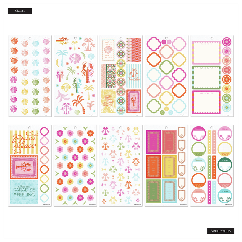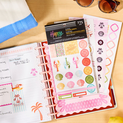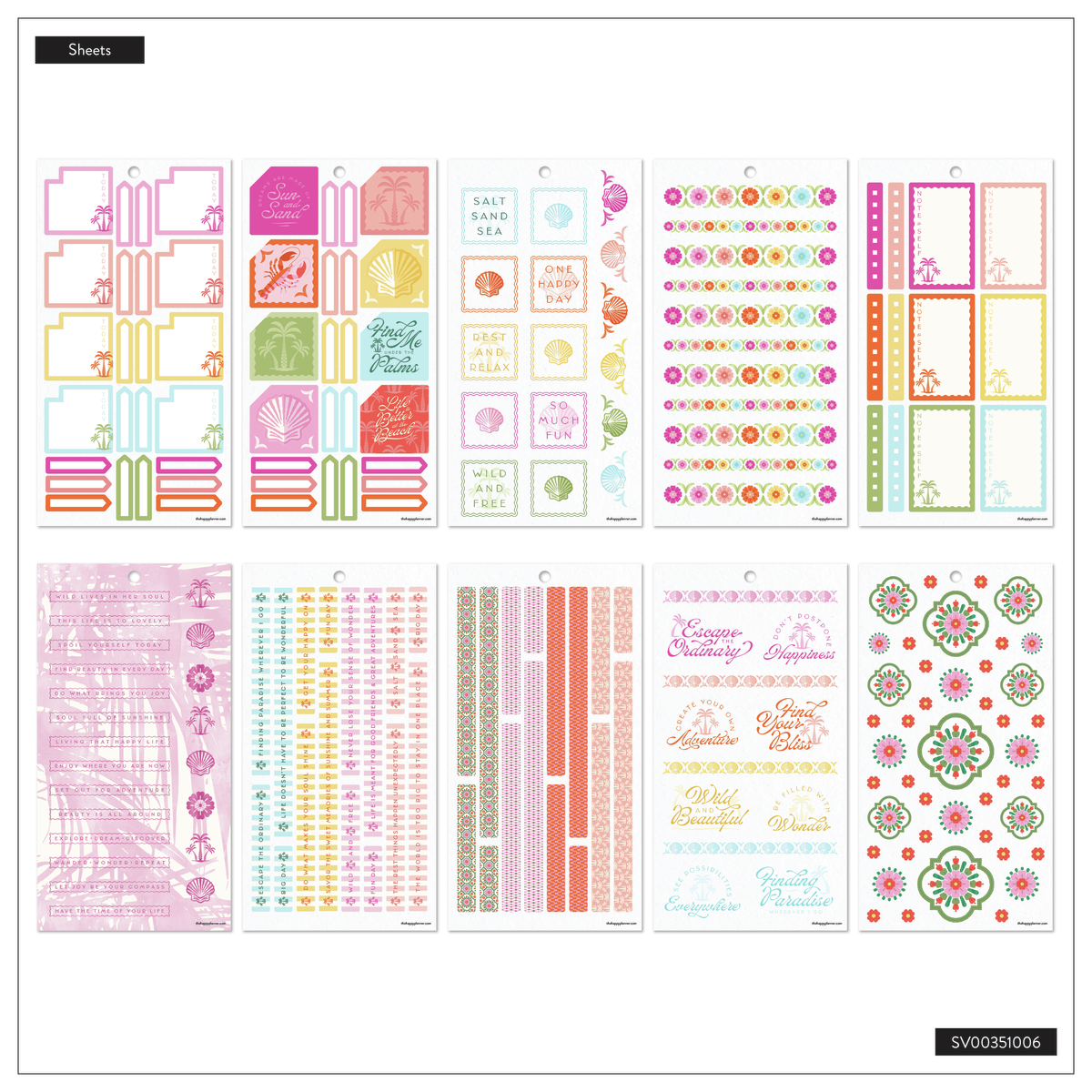 This Palm Beach Value Pack Sticker Book is bursting with sunshine, sea breeze, and summer vibes. With 30 sheets and 771 stickers, it’s packed with palm trees, pastel shells, lobsters, florals, and tropical phrases like “Live in the Sunshine” and “Find Me Under the Palms.” Perfect for adding playful pops of color, planning beach days, or simply bringing a coastal glow to your daily plans.