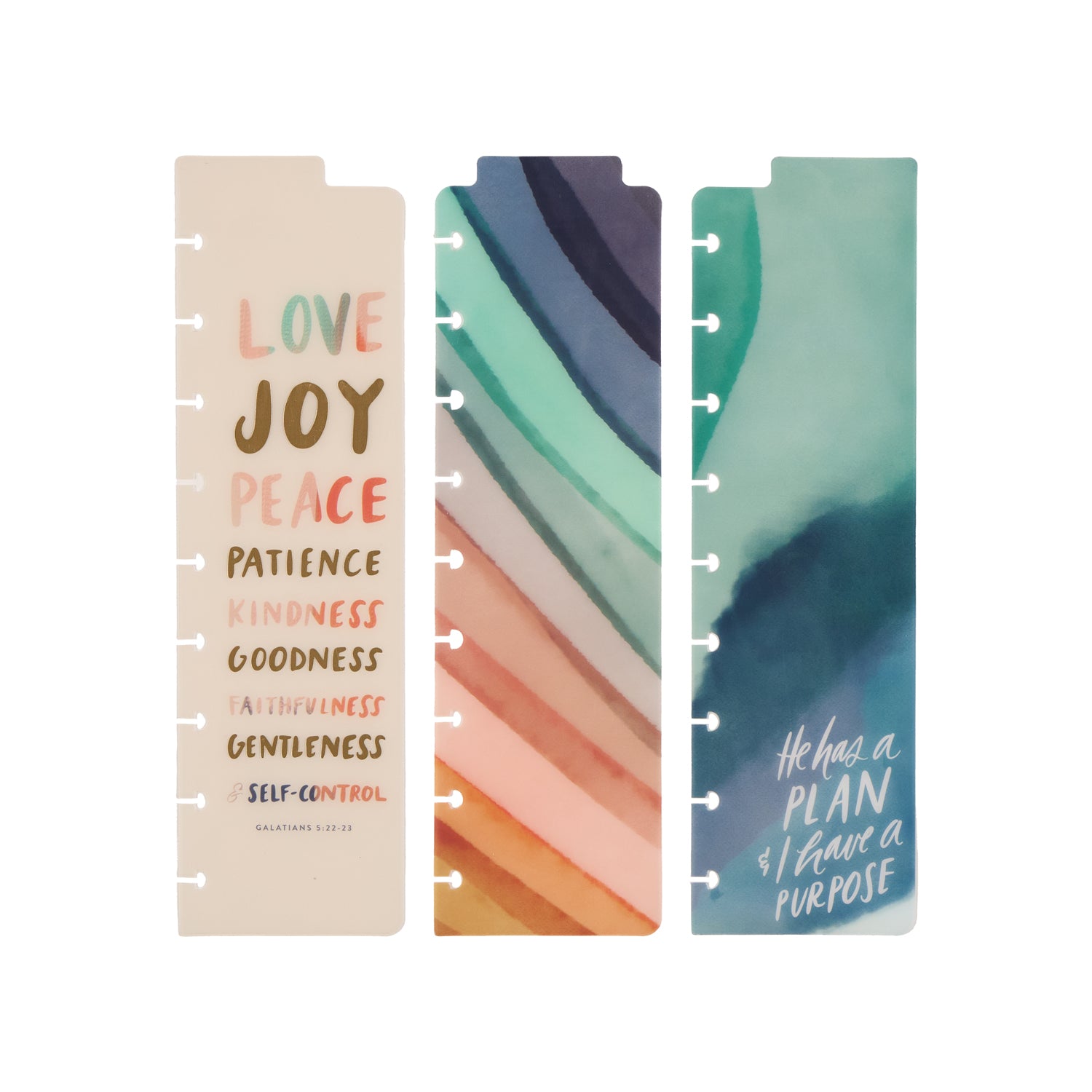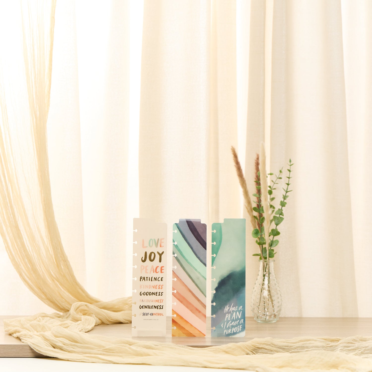 Mark your place with peace and purpose. The Watercolor Grace Faith Classic Bookmarks are designed to inspire your daily planning and faith journaling. Featuring serene watercolor artwork and uplifting words, these snap-in plastic bookmarks help you easily find your spot in your planner, journal, or notebook.